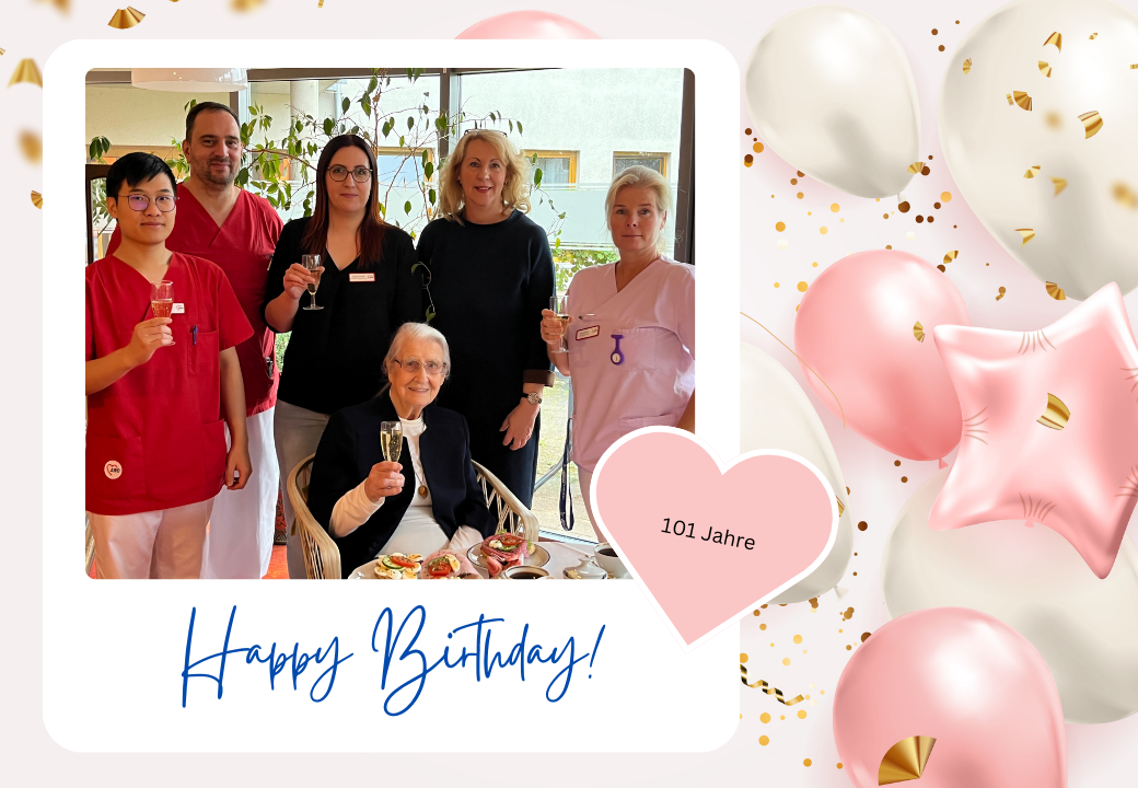 Letzte Woche feierten wir den unglaublichen 101. Geburtstag unserer lieben Bewohnerin Margarete Conell! Seit Ende August dieses Jahres lebt sie im Seniorenhof Am Buchholz und erfreut uns jeden Tag mit ihrem sonnigen Gemüt. Ein Jahrhundert voller Geschichten, Erlebnisse und Weisheit. Danke, dass wir ein Teil dieses Weges sein dürfen!