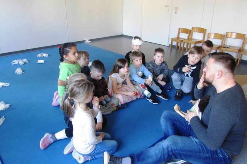 Letzte Woche war Silvio Tretow vom DRK in unserer Kita - Abenteuerland zu Gast und hat mit den Vorschulkindern und den Schülern vom Hort einen Erste-Hilfe-Kurs durchgeführt. Viele Fragen wurden beantwortet: