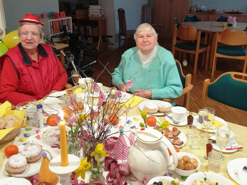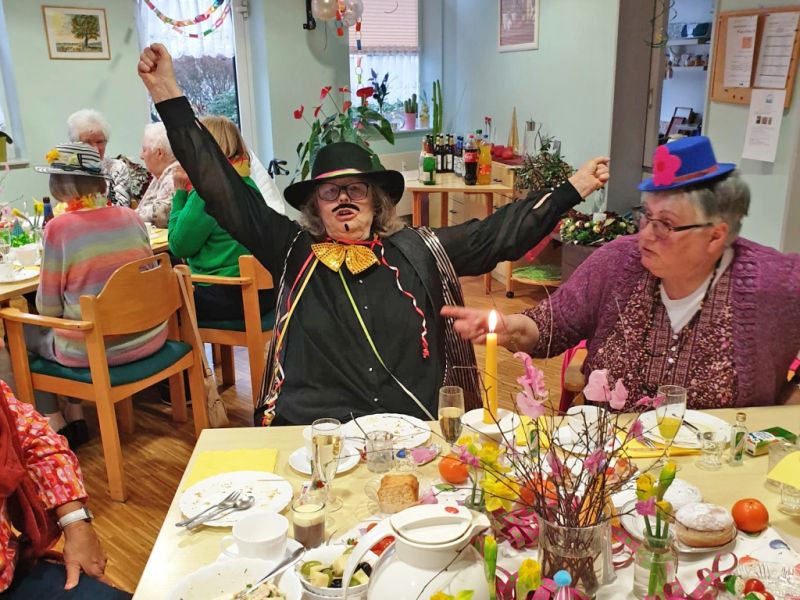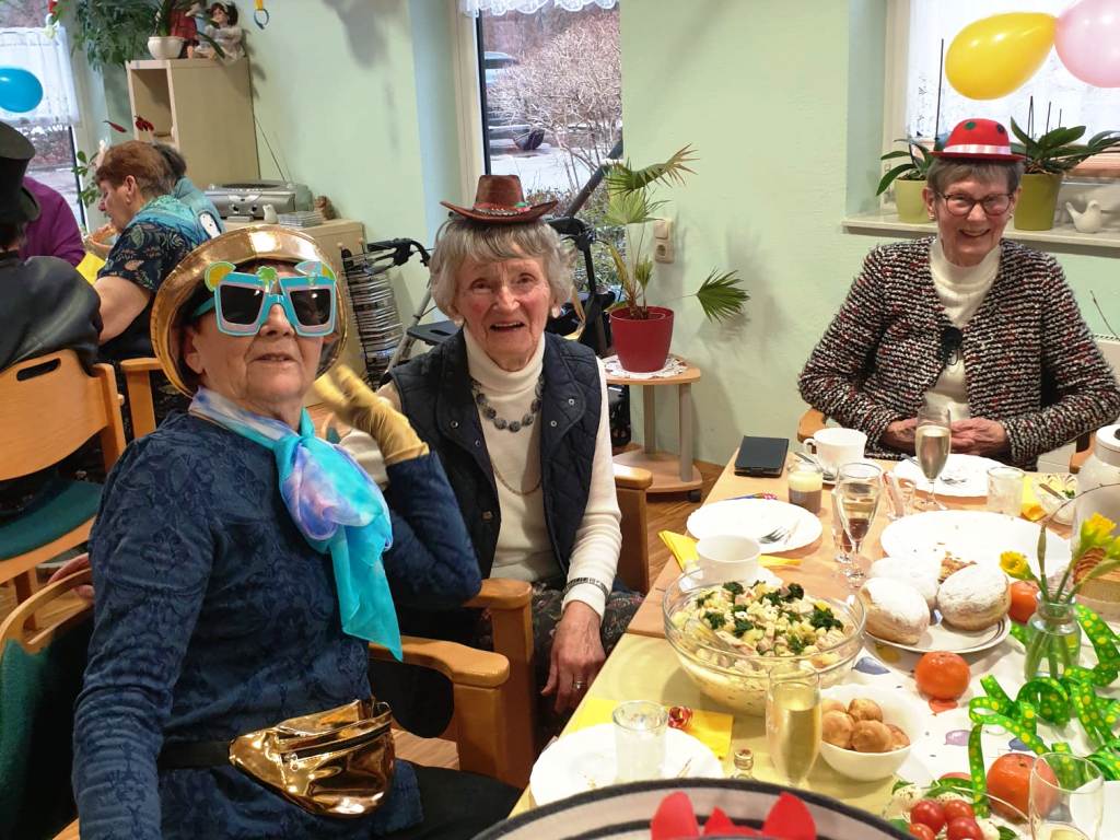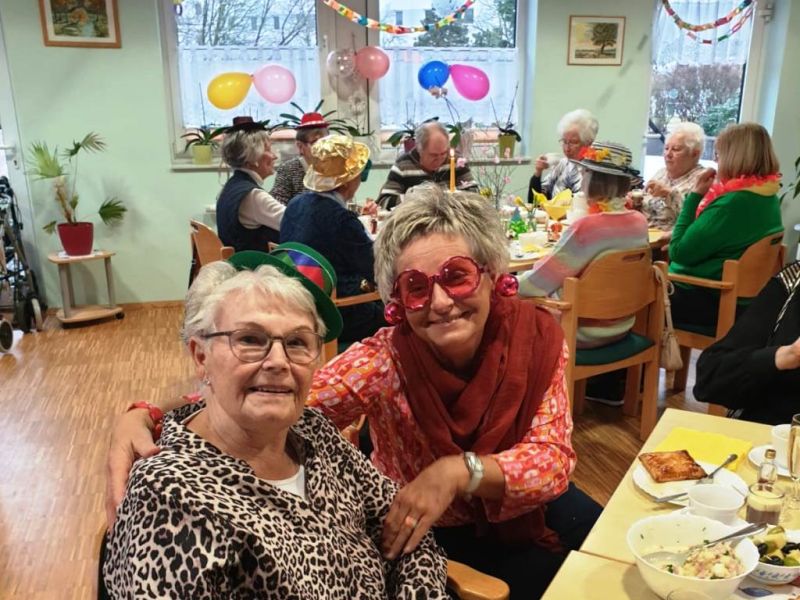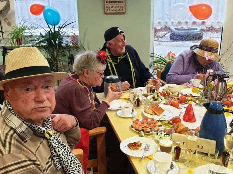 Viele Bewohnerinnen und Bewohner feierten gemeinsam bei toller Stimmung. Mit Pfannkuchen, selbstgebackenem Kuchen sowie Saft, Sekt und anderen Getränken war für das leibliche Wohl bestens gesorgt. Es wurde angestoßen, erzählt, gelacht und gemeinsam gefeiert. Bunt dekorierte Tische, spaßige Faschingshüte und kreative Kostüme sorgten für viele lachende Gesichter – ein rundum gelungener Nachmittag!