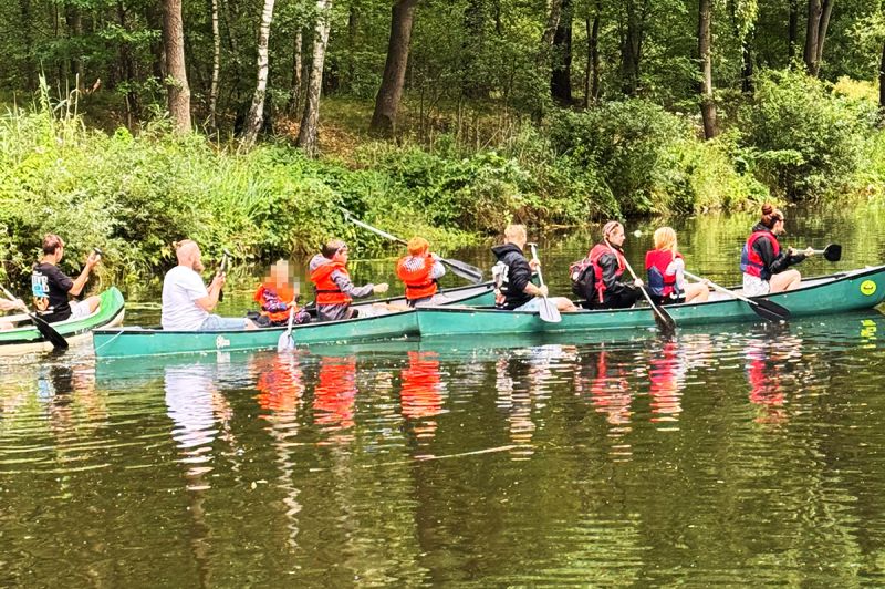 Aufgrund des eher mäßigen Wetters, blieben wir am Mittwoch auf dem Campingplatz🏕️… Aber wie heißt es so schön? „Es gibt kein schlechtes Wetter, es gibt nur schlechte Kleidung 🧥“. Also entschieden wir uns am Nachmittag für eine Kanutour 🛶. Das war aufregend und auf jeden Fall ein Erlebnis wert! Manch einer von uns dachte sich „Wenn schon nass, dann auch richtig!“ und ZACK… kenterte das Kanu der Jungs ca. 400m nach Start🤦♂️. Am frühen Abend taten wir etwas für unser Gruppengefühl 🤝– bei gemeinsamen Spielen mit dem Schwungtuch lernten wir uns und unsere Betreuer nochmal ganz anders kennen und übten, die Stärken und Schwächen jedes Einzelnen zu respektieren.