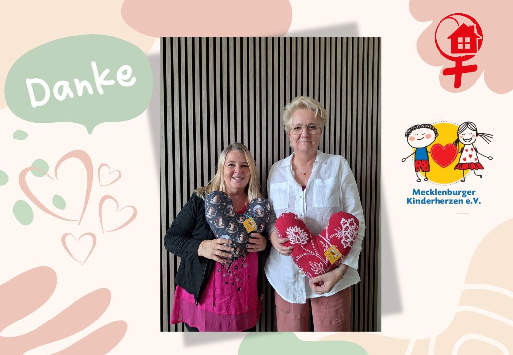 In dieser Woche hat der Verein Mecklenburger Kinderherzen e.V. Herzkissen für das Frauenhaus Schwerin „Büro Frauen in Not“ übergeben. Diese liebevoll und mit viel Herzblut genähten Kissen sind weit mehr als nur Stoff und Füllung – sie können in schweren Zeiten ein Stück Wärme, Geborgenheit und Trost schenken, wenn die Welt manchmal dunkel und aussichtslos erscheint. Und vielleicht können die Herzkissen auch dabei helfen, ein kleines Stück Hoffnung auf einen neuen Anfang zu schenken.