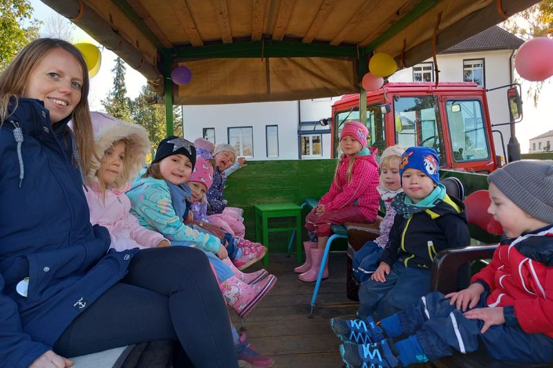 Das Herbstfest in der Kita Abenteuerland wurde zu einem besonderen Erlebnis für alle Beteiligten. Ein Highlight des Tages war zweifellos der Treckerausflug. Der Großvater eines Kindes hatte mit viel Engagement die notwendigen Genehmigungen eingeholt, sodass die Fahrt mit dem Trecker und einem Anhänger durch das Wohngebiet, auf dem die Kinder mitfahren konnten, sogar von der Polizei begleitet wurde. Diese außergewöhnliche Attraktion sorgte bei den Kleinen für strahlende Gesichter und große Begeisterung.