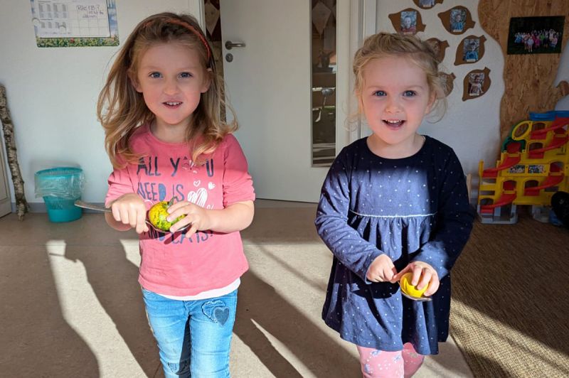 Neben dem spannenden Ausflug bot das Herbstfest viele weitere Aktivitäten rund um die bunte Jahreszeit. Die Kinder konnten sich beim Kartoffellauf messen oder ihrer Kreativität beim Kartoffeldruck freien Lauf lassen. Außerdem wurde das traditionelle Kürbisschnitzen angeboten, und der Hof verwandelte sich in ein herbstliches Kunstwerk mit bunter Deko aus Blättern. Auch kulinarisch kamen die Kinder auf ihre Kosten. Besonders die Popcornmaschine der Firma Klü war ein beliebter Anlaufpunkt, wo sich die kleinen Gäste frisches Popcorn abholen konnten. Begleitet wurde der Tag von strahlendem Sonnenschein, was die ohnehin gute Stimmung noch einmal hob. Die Kinder waren sichtlich begeistert und verbrachten einen Tag voller Spaß, Spiel und Kreativität. Für die Erwachsenen war es ebenfalls ein schöner Tag, geprägt von glücklichen Gesichtern und einer rundum gelungenen Veranstaltung.