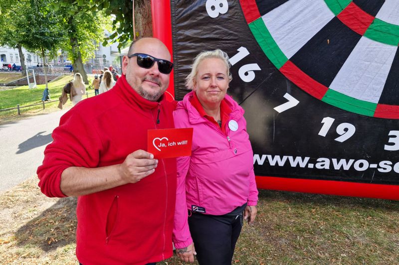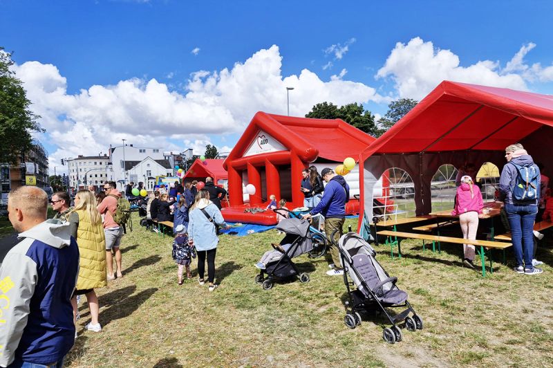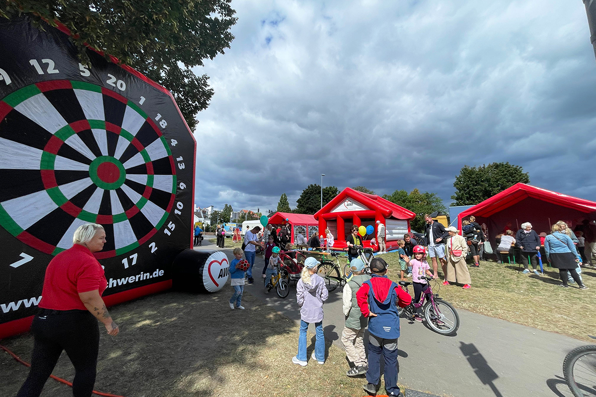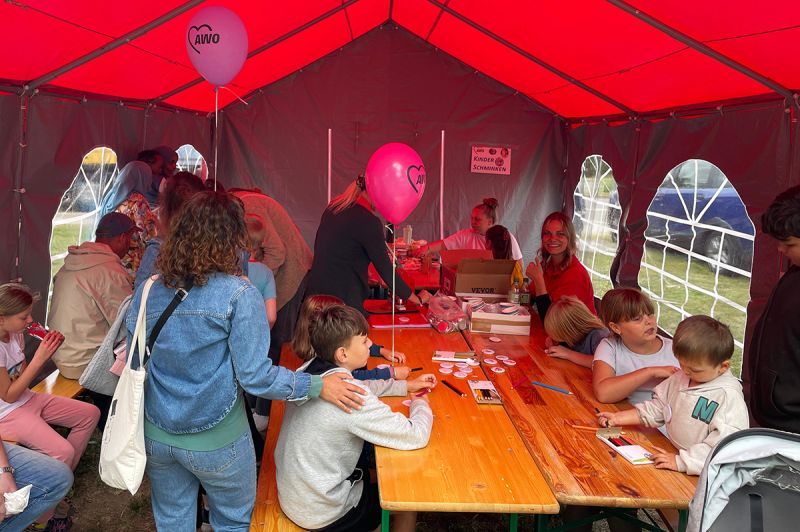 Bei unsere Aktionen - das Fußballdarts, die Hüpfburg, das Kinderschminken, das Dosenwerfen sowie unsere Buttonmaschine mit Bastelstand konnten sich die Kinder austoben und kreativ werden. Auch unser Maskottchen AWOscha war wieder mit am Start und begeisterte nicht nur die Kleinen.