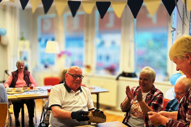 Das Fest begann mit einem zünftigen Brunch für die Tagespflegegäste. Laugenbrezeln, eine deftige Käseplatte, den typischen Obazda , bayrische Würste mit Leberkäse, Germknödel und eine leckere Kürbissuppe wurde serviert. Nach dem bayerisch kräftigen Essen standen Bewegung und Spaß auf dem Programm. Die Tagesgäste traten zu einem lustigen Wettbewerb an. Das war zum Beispiel Nägel mit dem Hammer in eine Baumscheibe schlagen oder Luftballons mit einem Pfeil zum Platzen bringen. Natürlich ging es hier um den gemeinsamen Spaß. Der Sieger bekam ein Lebkuchenherz überreicht. Zwischendurch schunkelten die Senioren und tanzten Polonaise.