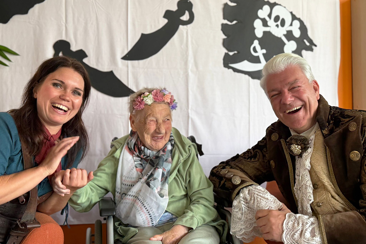 Doch das Abenteuer ging weiter: Nur drei Wochen später legten die Piraten selbst bei uns im Seniorenzentrum zu einem Überraschungsbesuch an. Da staunten unsere Bewohner nicht schlecht und genossen einen Nachmittag voller Lachen und Unterhaltung mit ihrem eigenen Piraten zum Anfassen Quatsch machen!