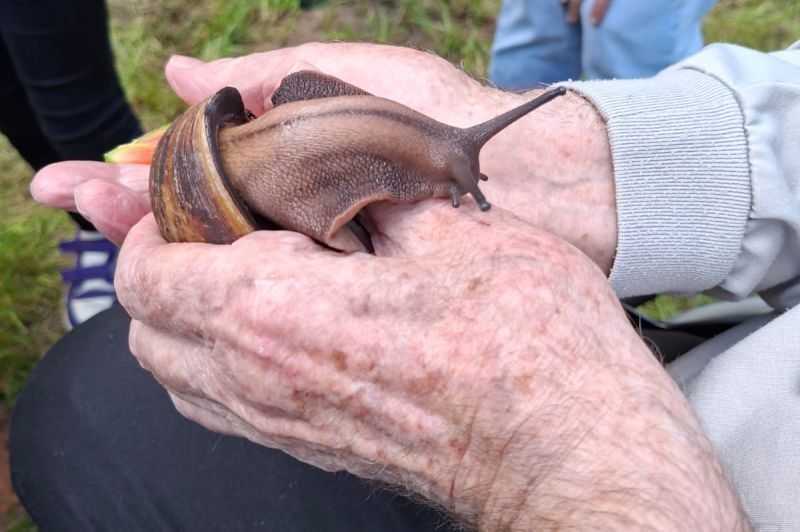 Als besonderen Höhepunkt durften wir Andrea Hauser „Unsere kleine Burderei" aus Mühlenbeck, mit ihren tierischen Besuchern begrüßen. Dabei handelte es sich um 5 Achatschnecken, auch Riesenschnecken genannt. Schneckbert, Schniesela, Schneckchen, Gerry und Waldemar wurden von allen begeistert bewundert und auch behutsam auf die Hand genommen. Das war mal ein ganz besonderer tierischer Besuch, der für viel Gesprächsstoff sorgte: „He, die sind ja noch langsamer als wir!“