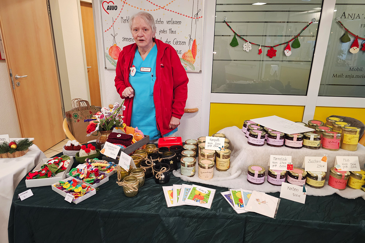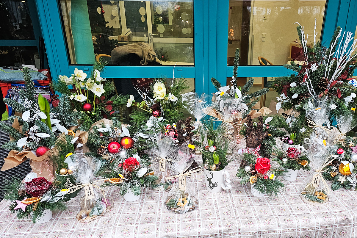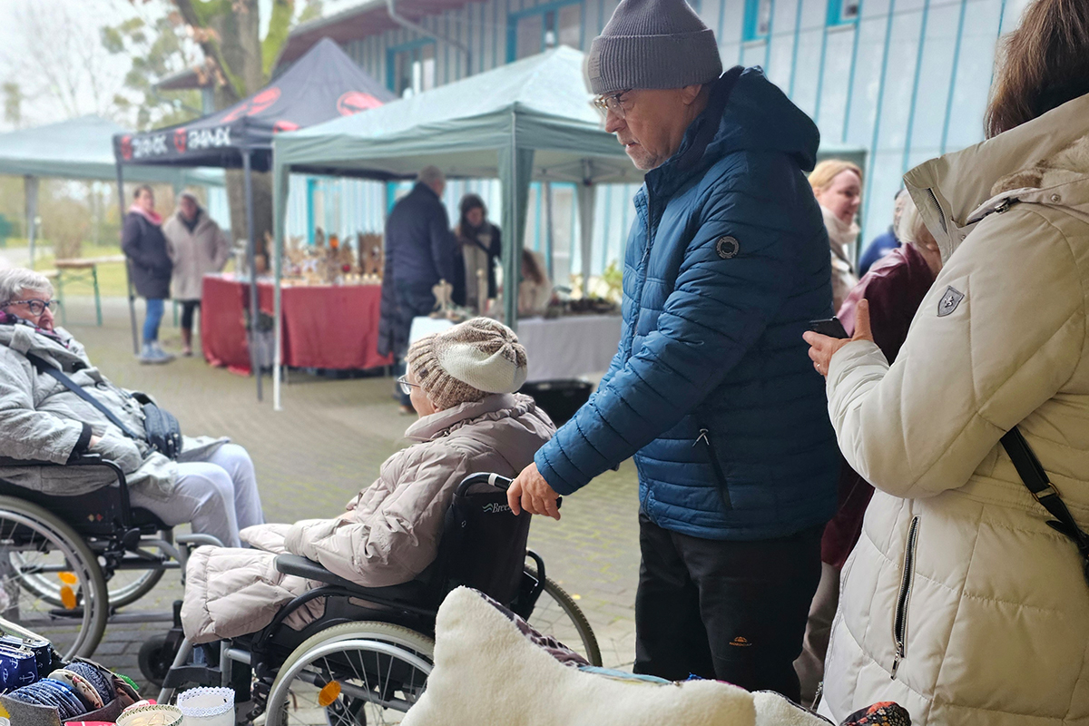 Liebevoll gestalteten Stände mit festlichen Gestecken und weihnachtlichen Kunstobjekten waren echte Hingucker auf dem Weihnachtsmarkt im Seniorenhaus Schelfwerder. Die Stimmung war großartig und die Versorgung einfach himmlisch: warme Waffeln, duftender Glühwein, leckere Bratwurst – alles, was zu einem gemütlichen Weihnachtsmarkt dazugehört. Unsere Senioren haben sich riesig gefreut, fleißig gestöbert und die besondere Atmosphäre mit ihren Angehörigen genossen.