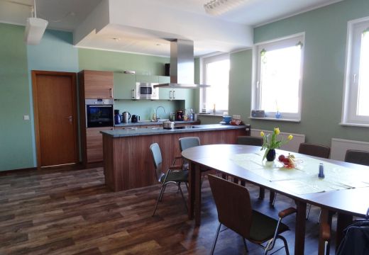 Die Demenz-Wohngemeinschaften befinden sich in einem Haus auf verschiedenen Etagen und verfügen insgesamt über 17 barrierefreie Wohnungen. Die Wohnungen werden mit dem persönlichen Mobiliar der Bewohner individuell durch die Angehörigen/Betreuer eingerichtet und jede Wohnebene ist mit einem Treppenlift erreichbar. Allen Bewohnern stehen liebevoll gestaltete Gemeinschaftsräume und ein großzügiger Küchenbereich zu Verfügung.