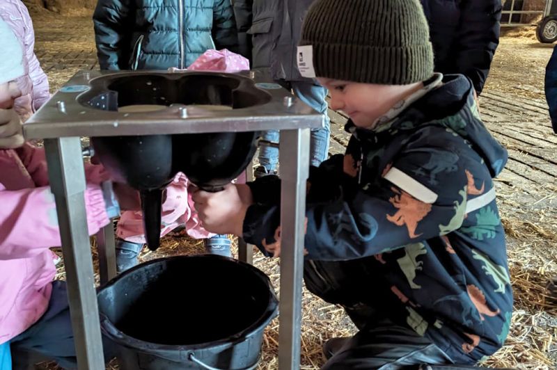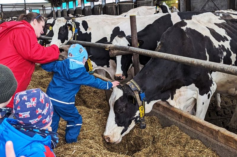 Kita Abenteuerland auf Entdeckertour. Zum Thema Nutztiere hat der „Hühnerstall“ der Kita Abenteuerland die Einladung einer Mutter angenommen und besuchte einen Kuhstall. Dort wurden sie von der Mutti und einem weiteren Mitarbeiter in der Anlage herumgeführt. Die Kinder lernten viele neue Dinge rund um die Kuh und waren begeistern. Einem der Kälbchen fehlte noch der Name und die Kinder durften bei der Namensfindung helfen. Sie sprudelten ihre Ideen heraus und wir sind schon sehr gespannt, für welchen Namen man sich entscheiden wird.