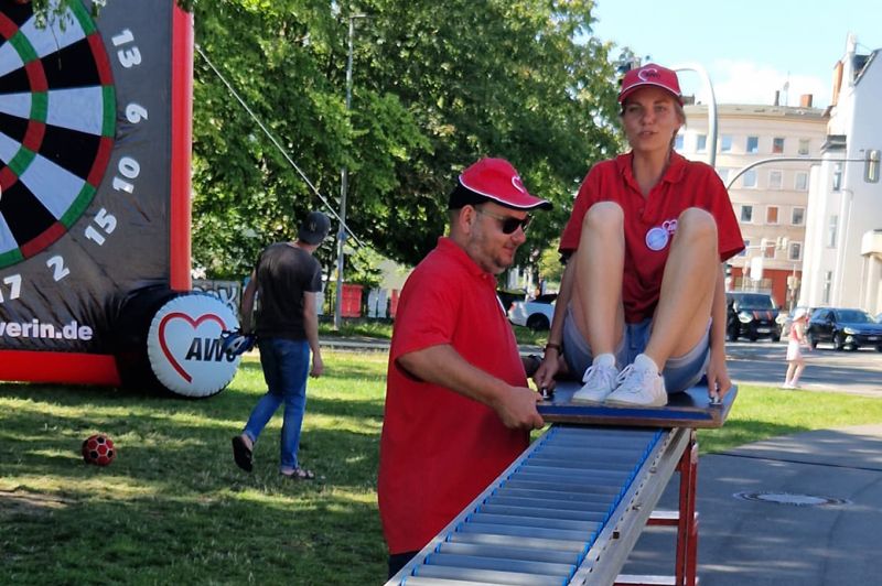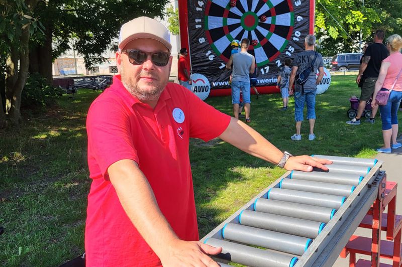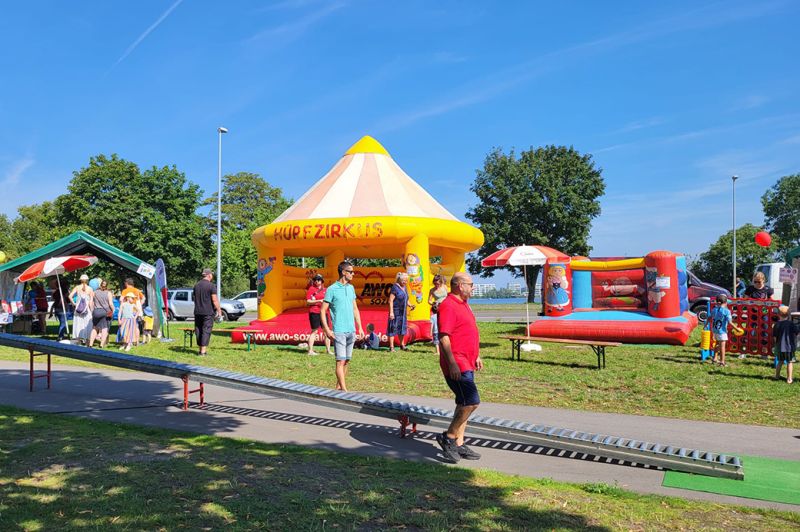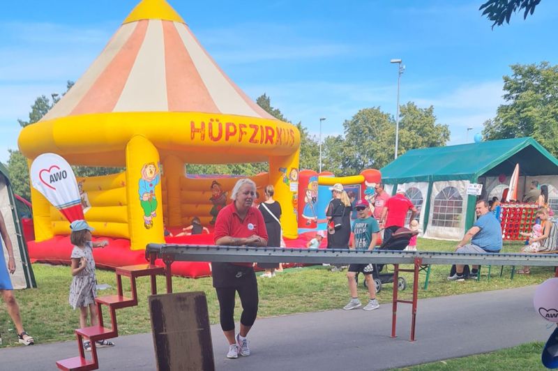Auch das Wetter spielte mit. Natürlich war es mit seinen 30 Grad am Samstag für alle Beteiligten eine echte Herausforderung, aber immer noch besser als Regen, wovon wir in diesem Sommer schon reichlich hatten. Auch unser Maskottchen „AWOscha“ erregte wieder viel Aufmerksamkeit auf seinem Rundgang. Wir sagen DANKE bei Bianka aus dem Ferienzentrum Mueß, die mutig genug war, in unseren AWOscha zu springen, was bei diesen Temperaturen einer Sporteinheit in der Sauna gleichkam.