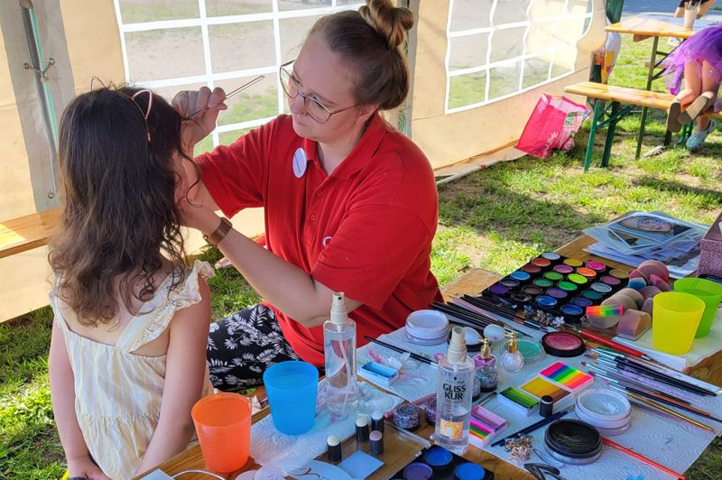 Das Schweriner Drachenboot Festival ist legendär und lockt in jedem Jahr viele Sportler und Besucher an. Die AWO ist mit dem AWO-Kinderland und zahlreichen Aktionen seit nunmehr 11 Jahren ein Teil dieses Festivals. Das Team besteht aus Freiwilligen Kolleg*innen und ihren Angehörigen. Auch in diesem Jahr war das Team schnell zusammengestellt, denn es gibt seit Jahren einen festen Stamm von Freiwilligen, die immer gern und mit viel guter Laune dabei sind. Mit zahlreichen Aktionen bereicherten sie am Samstag und am Sonntag das Drachenboot Festival. Die Kids freuten sich über ein Riesen-Fußball-Dart, die Rollenrutsche, Hüpfburgen, das Glücksrad, eine Ballwurfwand, den Bastelstand und das Kinderschminken. Der Andrang beim Kinderschminken war – wie jedes Mal – unglaublich.