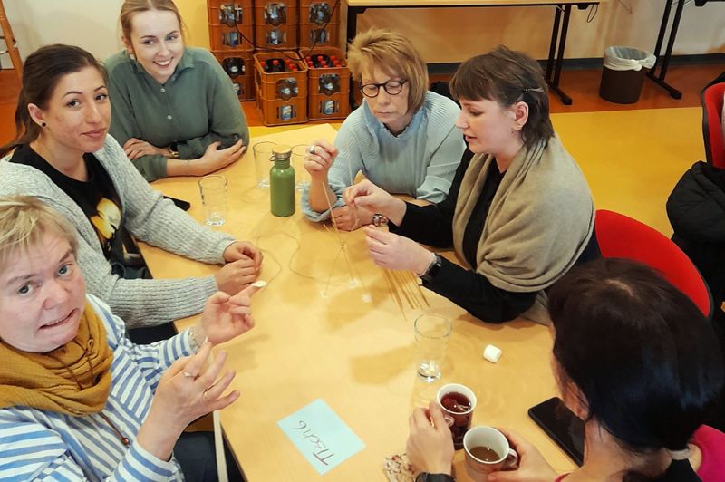Mehr Austausch untereinander - Unter diesem Motto trafen sich alle Fachkräfte des Bereiches Hilfen zur Erziehung/Hilfen zum Leben im neu renovierten Jugendtreff, dem Deja vu. Gestartet sind wir gemeinsam - mit einem von Vielfalt geprägten Frühstück, welches die jeweiligen Teams liebevoll vorbereiteten. Danach wurden auf kreative Weise Kleingruppen gebildet, in denen bei entspannter Atmosphäre ein Austausch untereinander ermöglicht wurde. Anhand von mitgebrachten Fotos und Gegenständen entwickelten sich Gespräche über Besonderheiten der verschiedenen Arbeitsfelder, Haustiere, Zukunftspläne oder auch die eigene Biografie – Lachen und Gemurmel hallten durch den Raum. In den Pausen lud der hauseigene Tischkicker zu Wettstreiten untereinander ein. Anschließend war Teamwork und Statik-Verständnis gefragt! In einer bestimmten Zeit und mit begrenzter Anzahl von Hilfsmitteln, wie Spaghetti, Klebeband und Marshmallows sollte ein möglichst hoher alleinstehender Turm gebaut werden. Das Gewinnerteam erreichte 53cm - es fehlte jedoch keiner Gruppe an Einfallsreichtum. Der Abschluss dieses schönen Vormittags wurde durch ein gemeinsames Mittagessen gekrönt.