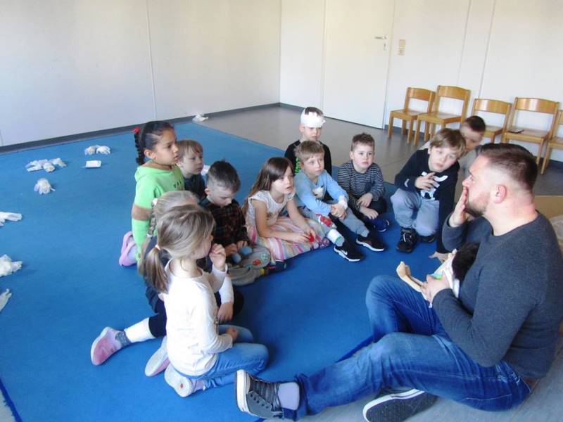 Letzte Woche war Silvio Tretow vom DRK in unserer Kita - Abenteuerland zu Gast und hat mit den Vorschulkindern und den Schülern vom Hort einen Erste-Hilfe-Kurs durchgeführt. Viele Fragen wurden beantwortet: