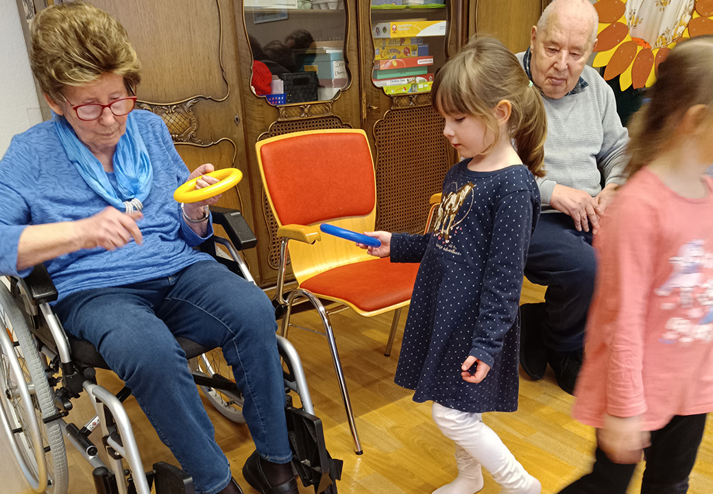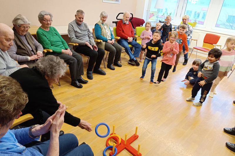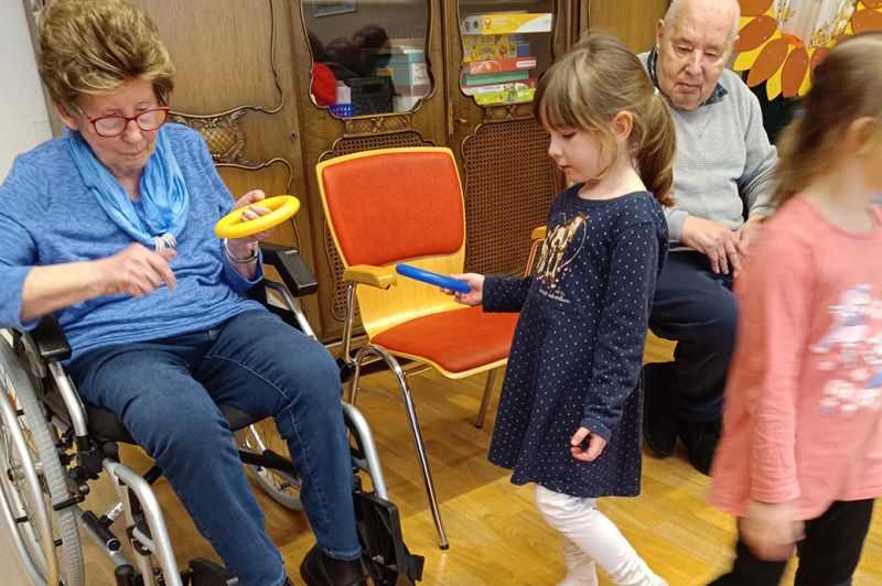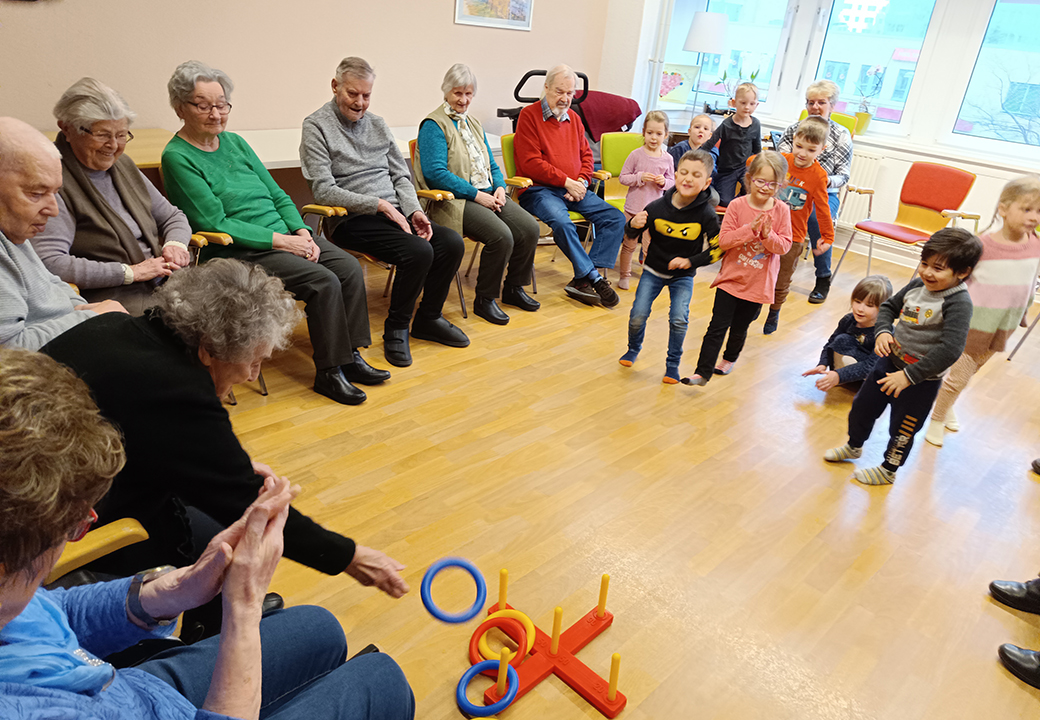 Ein vergnügter Tag in der Tagespflege mit der Kita Sonnenschein! Die Kinder unserer Patenkita Sonnenschein haben gemeinsam mit unseren Tagesgästen gesungen, gelacht und gespielt. Es war einfach großartig zu sehen, wie die Generationen miteinander harmonierten und gemeinsam Spaß hatten. Diese Momente sind unbezahlbar und bereichern uns alle.