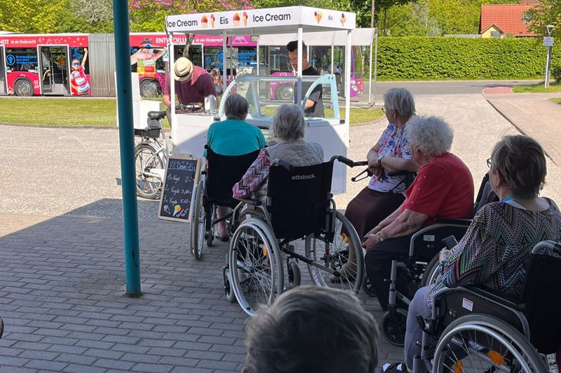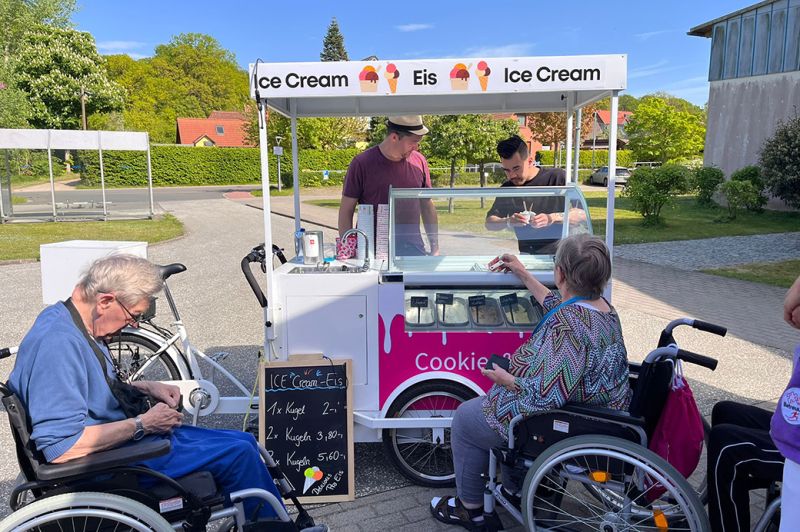 Cookies an Cream waren mit ihrem Eiswagen zum 1. Mal im Seniorenhaus Schelfwerder am Heidensee, wollen aber ab jetzt regelmäßig vorbeischauen.