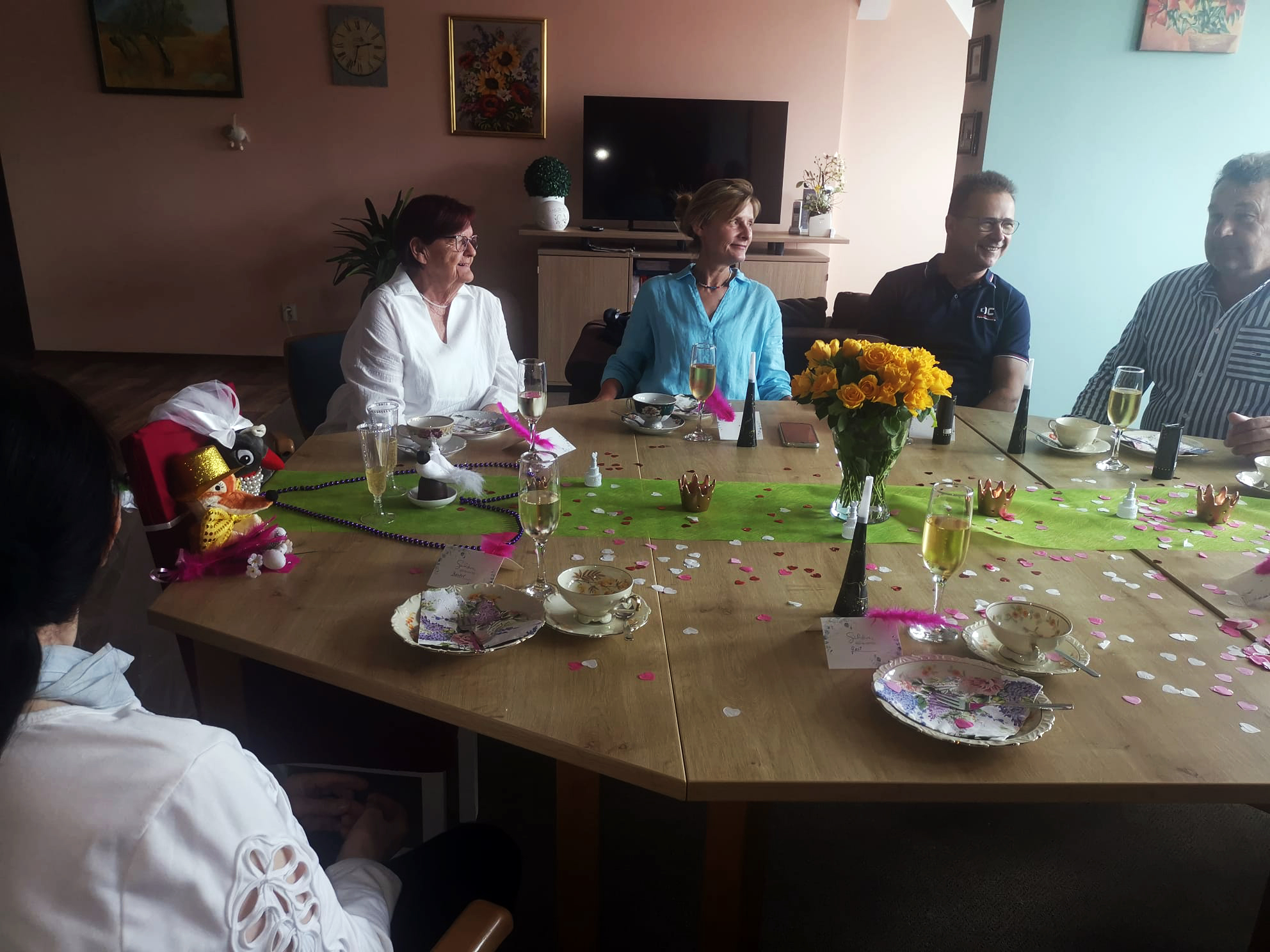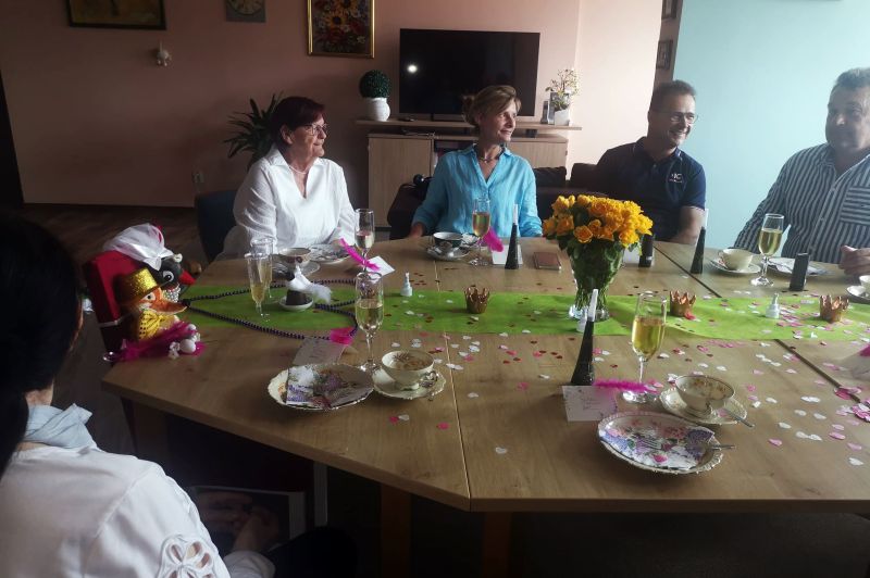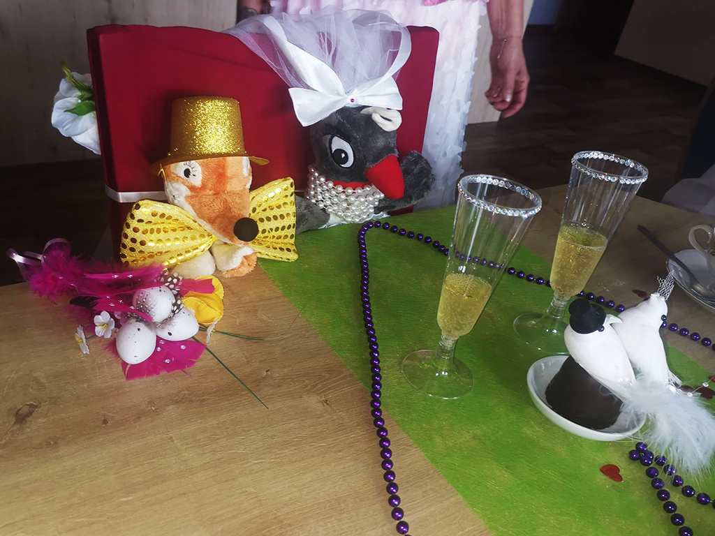 Themennachmittage mit Angehörigen sind besonders beliebt bei unseren Senioren. Da kennt die Kreativität der Präsenzkräfte keine Grenzen. Kürzlich hatte Marlies Prestin (Betreuerin) die Idee, feiern wir doch einfach mal eine Hochzeit. Gesagt, getan. Das glückliche Paar? Herr Fuchs und Frau Elster! Bei Kaffee und Kuchen gab es eine richtige Zeremonie mit Standesbeamten und Trauzeugen und alle hatten einen Riesenspaß. Bei uns wird es nie langweilig!