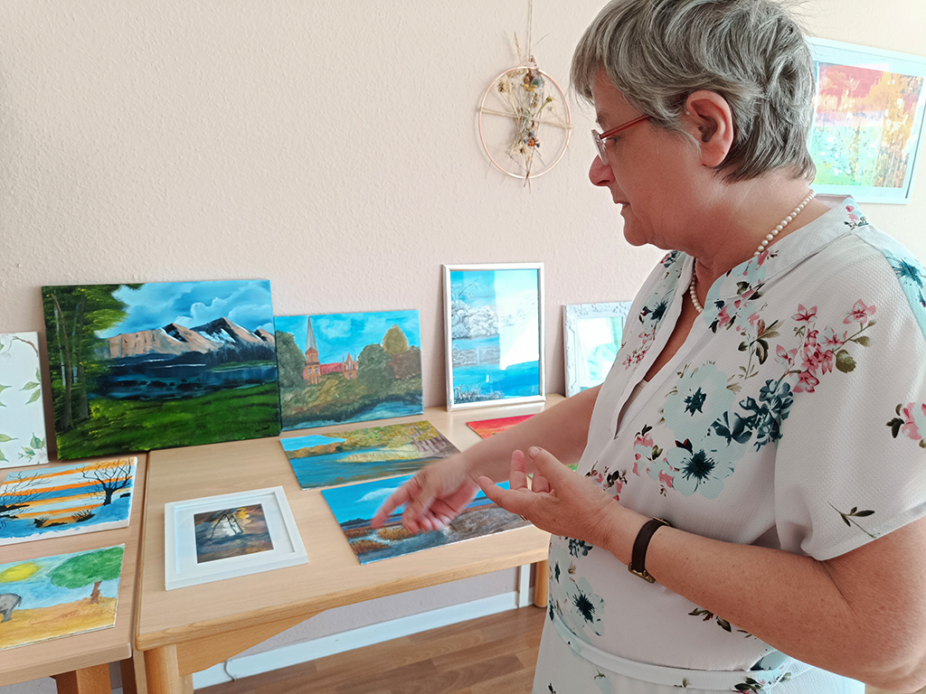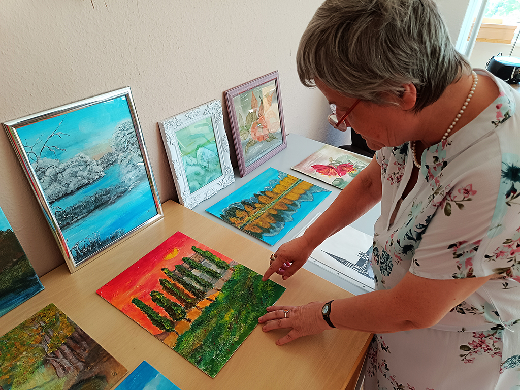 Unsere liebe Ilona ist dreimal die Woche als Tagesgast bei uns in der Tagespflege am Dreescher Markt. Ihr ist es wichtig, soziale Kontakte zu haben und aktiv zu sein. In ihrer Freizeit malt sie wunderschöne Bilder aus allen Bereichen der Natur und mit den unterschiedlichsten Techniken! Ab und zu bringt sie ihre Werke mit und erklärt den anderen Tagesgästen, wie ihre Kunstwerke entstanden sind.