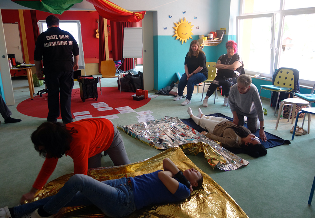Ein Tag voller lebenswichtiger Lektionen und mit einer guten Portion Humor! Unsere Kollegen der Kita Die kleinen Schulzen hatten das Vergnügen mit Patrick Schlien aus dem Team der Erste-Hilfe-Ausbildung M-V einen Auffrischungskurs zu absolvieren. Von der Beatmungspuppe bis zum Verbandswechsel – wir haben alles abgedeckt und dabei jede Menge Spaß gehabt! Ein riesiges Dankeschön an Patrick für die humorvolle Unterstützung und an unsere engagierten Mitarbeiter, die sich immer weiterbilden, um für jede Notfallsituation gewappnet zu sein.