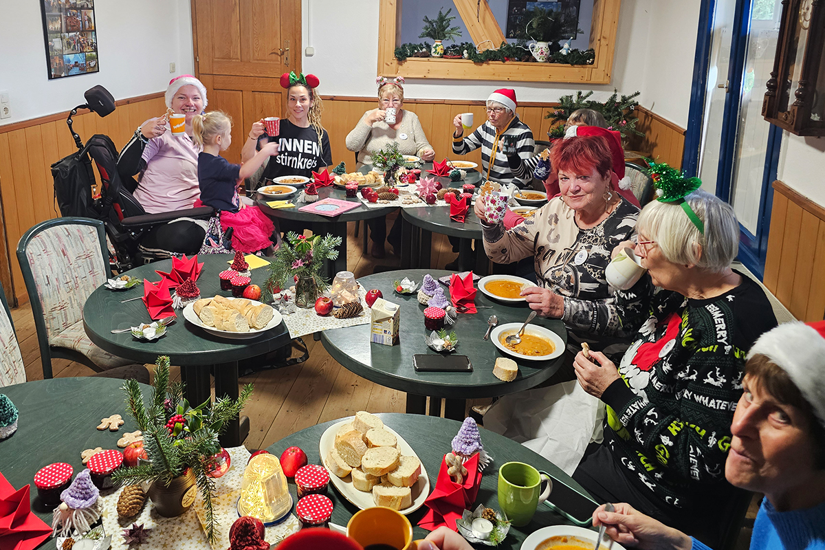 Seit fünf Jahren gibt es sie nun – die wohl fröhlichste Wassergymnastik-Truppe des Eltern-Kind-Zentrums. Das ganze Jahr über treffen sich die Damen mit Lio im warmen Wasser. Hier wird nicht nur geplanscht, hier wird richtig Sport gemacht! Und weil diese Gruppe nicht nur sportlich, sondern auch gesellig ist, gehören Weihnachtsfeiern und Sommerfeste längst fest dazu. Wir durften bei der diesjährigen Weihnachtsfeier dabei sein und haben eine unglaublich gemütliche, herzliche und wunderbar lustige Runde erlebt.