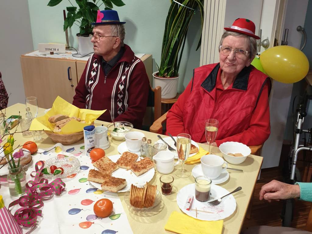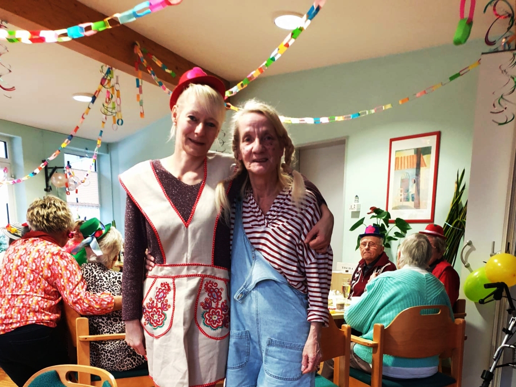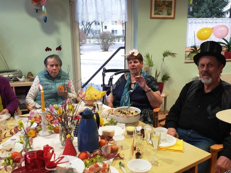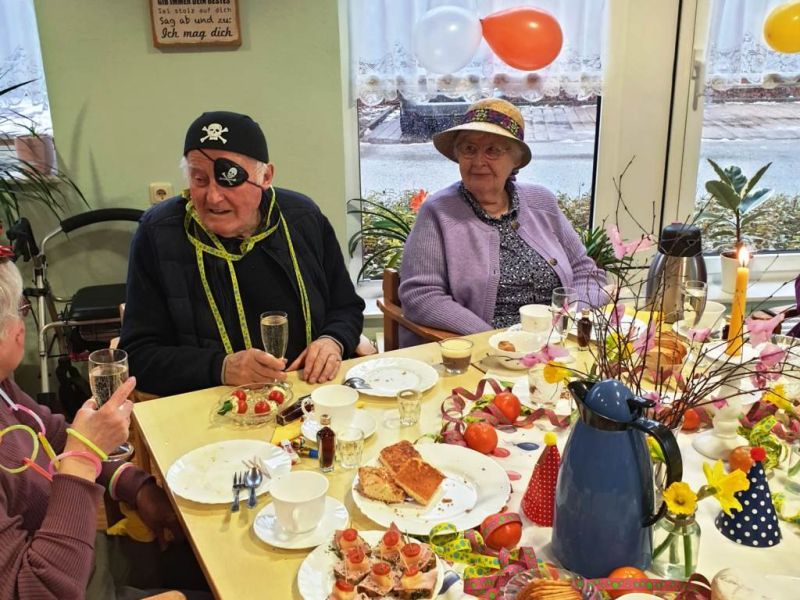 Viele Bewohnerinnen und Bewohner feierten gemeinsam bei toller Stimmung. Mit Pfannkuchen, selbstgebackenem Kuchen sowie Saft, Sekt und anderen Getränken war für das leibliche Wohl bestens gesorgt. Es wurde angestoßen, erzählt, gelacht und gemeinsam gefeiert. Bunt dekorierte Tische, spaßige Faschingshüte und kreative Kostüme sorgten für viele lachende Gesichter – ein rundum gelungener Nachmittag!