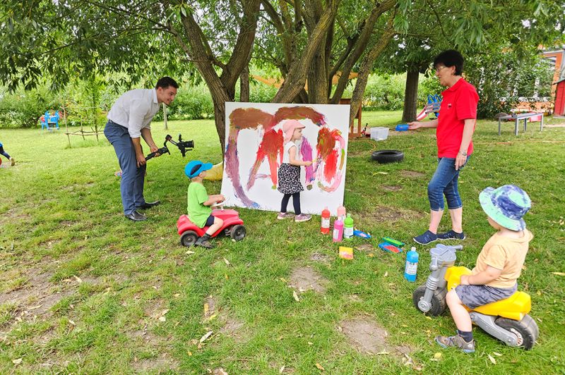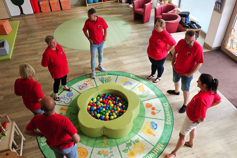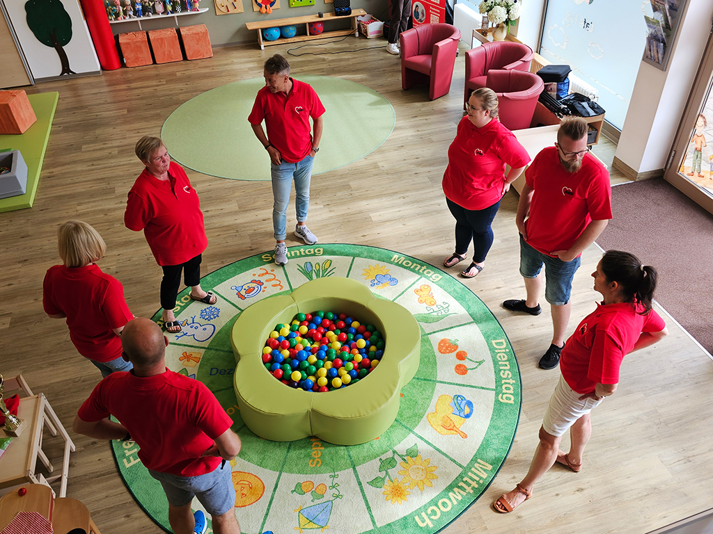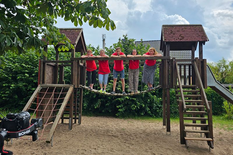 Nachdem wir uns durch unzählige Szenen und Fotomotive gekämpft hatten, ging es mit vollem Elan weiter in unsere Kita „Die kleinen Schulzen“. Dort erwartete uns ein weiteres Abenteuer: Kinder, die sich mindestens genauso sehr auf die Kamera freuten wie wir. Schnell war klar, dass wir einige zukünftige Schauspieler in unseren Reihen haben. Die kleinen Stars haben uns gezeigt, dass sie genauso gut improvisieren können wie die Großen. Und auch die Großen haben alles gegeben und beim Albern sein richtig viel Spaß gehabt.