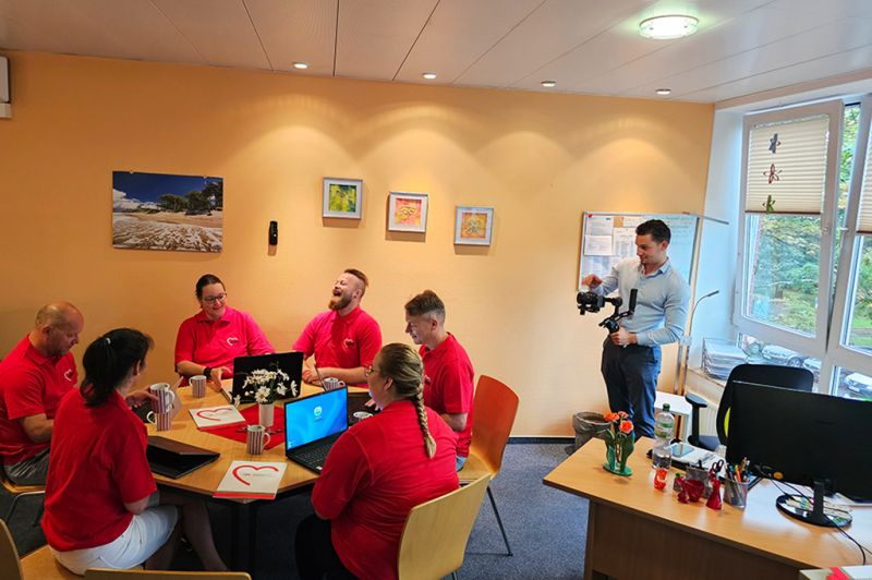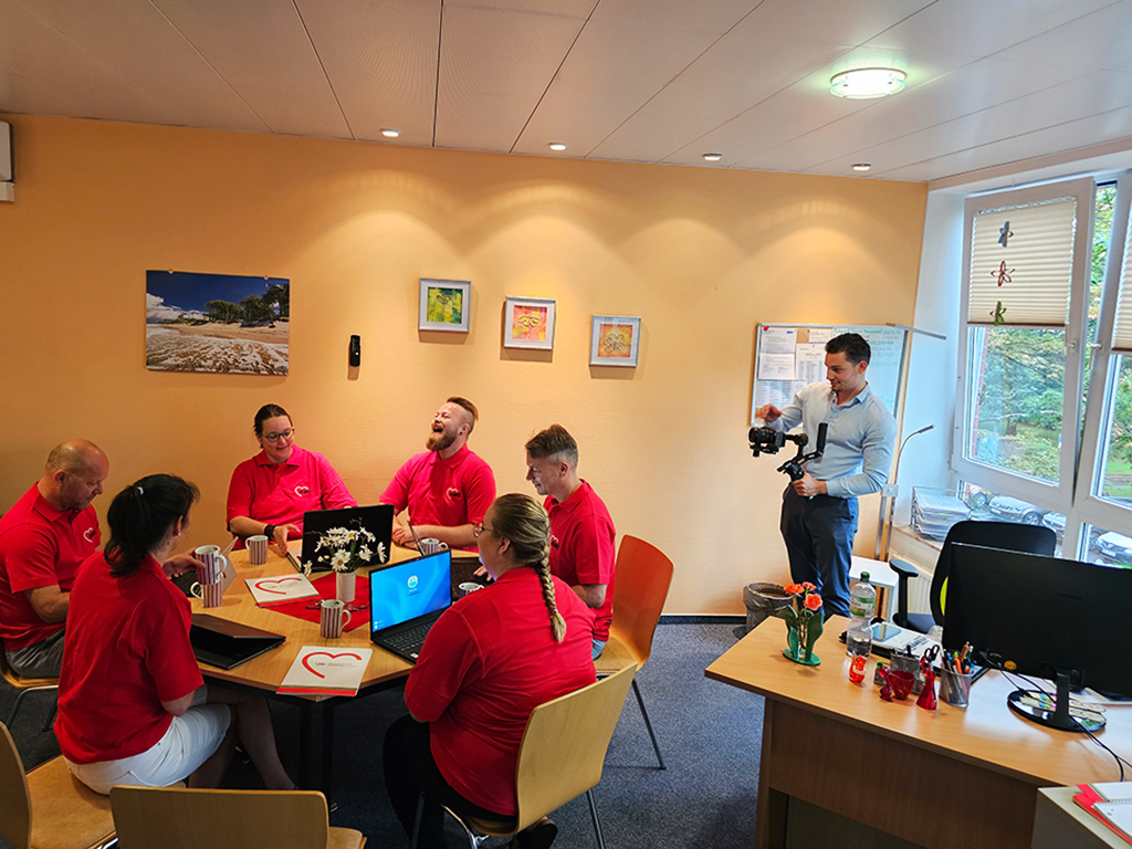 In der letzten Woche verwandelten sich einige unserer Einrichtungen in regelrechte Filmset. Zwei dynamische, kreative Köpfe von der Werbeagentur GEORG RECRUITING haben 3 verschiedene Einrichtungen besucht, um Werbeclips über unsere Arbeit, unseren Arbeitgeber und das, was uns täglich antreibt, zu drehen. Und was sollen wir sagen? Diese Jungs haben uns umgehauen! Ihre Fähigkeit, auf uns einzugehen, war bemerkenswert, und schon nach den ersten Minuten fühlten sich alle wohl in ihrer Haut. Drei Kolleginnen aus dem Bereich Hilfen zur Erziehung/Hilfen zur Lebensbewältigung haben sogar ihren Urlaub unterbrochen, um aktiv dabei zu sein – ein beeindruckendes Beispiel für Engagement.