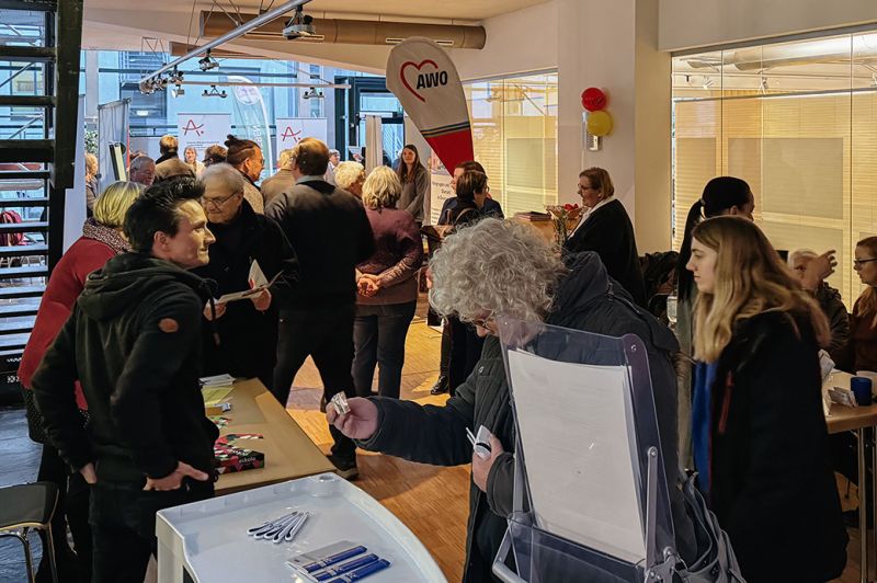 Vor der Veranstaltung sowie in der Pause konnten Besucherinnen und Besucher sich beim „Markt der Möglichkeiten“ über verschiedene Angebote und Unternehmen im Foyer informieren. Der Demenzparcours konnte ausprobiert werden, Senioren-Einrichtungen, Hörgeräteakustiker, Pflegedienste und Vereine stellten sich und ihre Arbeit vor und standen für Fragen zur Verfügung.