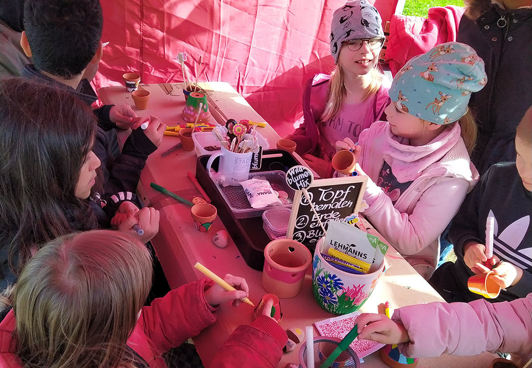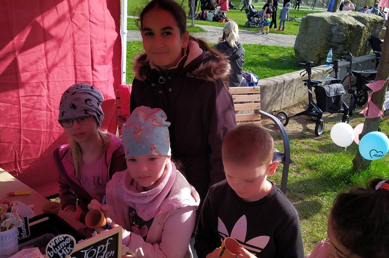 Rückblick Gesundheitstag 2023 auf der Keplerpromenade. Von Beginn an war der Stand unserer Kolleg*innen aus Garten und ElKiZ gut besucht. Die Kinder hatten großen Spaß, ihre eigenen Blumentöpfe zu bemalen und dann auch gleich etwas darin einzusäen. Natürlich durften sie ihre Kreationen mit nach Hause nehmen… der Stand war quasi ein Selbstläufer. Hat es am Morgen auch noch geregnet, so kam pünktlich gegen Mittag die Sonne raus. Die Stimmung war grandios. Mit Ringe werfen, Seifenblasen und Straßenmalkreide kam auch die Bewegung nicht zu kurz. Während die Kinder kreativ waren, informierten sich die Eltern über die Angebote im Garten und im ElKiZ. Es war für alle Beteiligten eine tolle Aktion. Wir sagen Danke bei unserer Ehrenamtlichen Julia, die uns fantastisch unterstützt hat und bei Ina, Birte, Stephan, Lio, Nicole und Brita für ihren Einsatz.