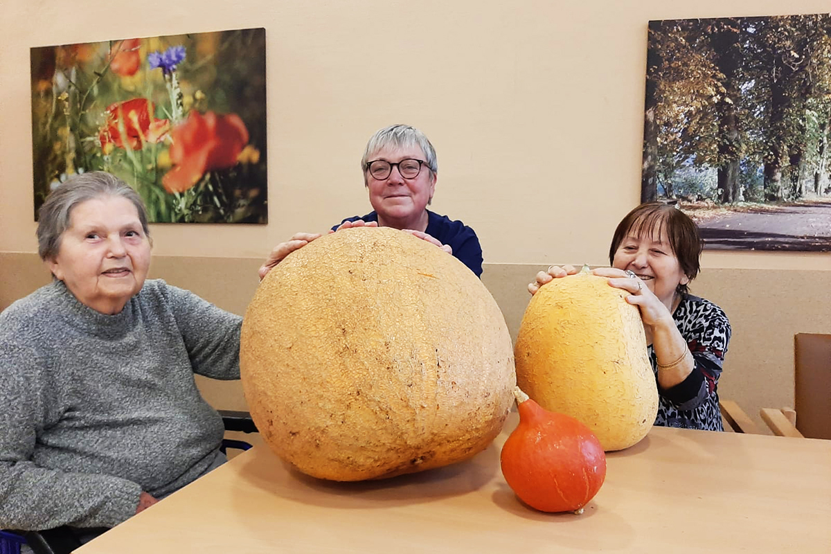 In unserem Seniorenhaus Klein Welzin haben wir diesen Sommer Hochbeete angeschafft und sie gemeinsam mit unseren wunderbaren Bewohnern gepflegt! Die erste Ernte war ein voller Erfolg: Vor allem die Zucchinis und Kürbisse haben uns mit ihrer Größe beeindruckt. Das Highlight: Ein Riesenkürbis mit einem Umfang von stolzen 156 cm und fast 30 kg Gewicht! Am Montag haben wir ihn gemeinsam verarbeitet und daraus eine köstliche Kürbissuppe gezaubert. Die Freude war riesig, und beim Schnippeln wurde viel gelacht und erzählt.