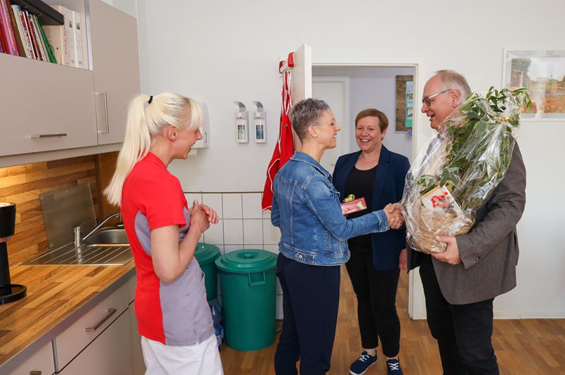 Gleichzeitig fand der Tag der offenen Tür statt. Es kamen „alte“ Bekannte und auch Interessierte. Bei Kaffee und Selbstgebackenem konnten sich Pflegebedürftige sowie ihre Angehörigen informieren, umschauen und beraten lassen.