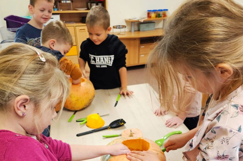 Neben dem spannenden Ausflug bot das Herbstfest viele weitere Aktivitäten rund um die bunte Jahreszeit. Die Kinder konnten sich beim Kartoffellauf messen oder ihrer Kreativität beim Kartoffeldruck freien Lauf lassen. Außerdem wurde das traditionelle Kürbisschnitzen angeboten, und der Hof verwandelte sich in ein herbstliches Kunstwerk mit bunter Deko aus Blättern. Auch kulinarisch kamen die Kinder auf ihre Kosten. Besonders die Popcornmaschine der Firma Klü war ein beliebter Anlaufpunkt, wo sich die kleinen Gäste frisches Popcorn abholen konnten. Begleitet wurde der Tag von strahlendem Sonnenschein, was die ohnehin gute Stimmung noch einmal hob. Die Kinder waren sichtlich begeistert und verbrachten einen Tag voller Spaß, Spiel und Kreativität. Für die Erwachsenen war es ebenfalls ein schöner Tag, geprägt von glücklichen Gesichtern und einer rundum gelungenen Veranstaltung.