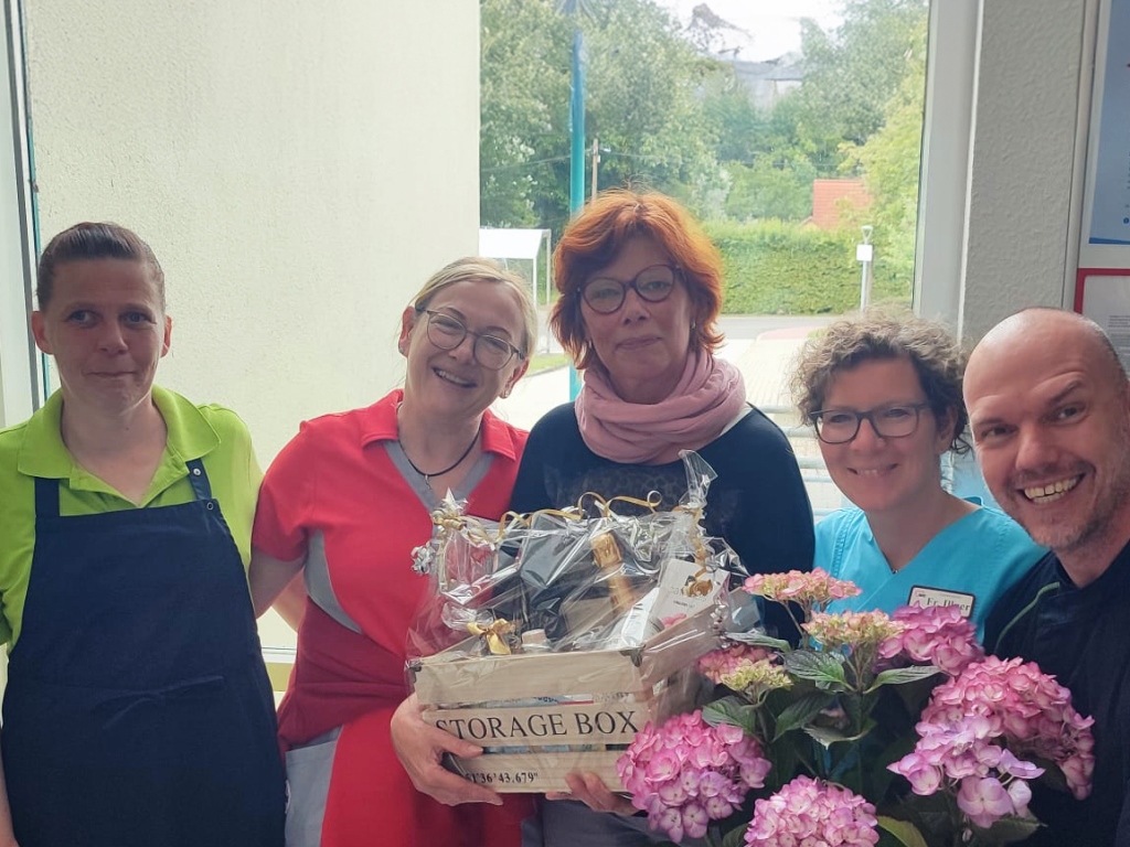 Im Seniorenhaus Schelfwerder haben wir kürzlich unsere liebe Kollegin Marianne verabschiedet. Sie hat seit über 22 Jahren mit Herz und Hingabe in unserer Küche im Seniorenhaus gearbeitet. Nun geht sie in den wohlverdienten Ruhestand. Es war ein tränenreicher Abschied, aber wir sind dankbar für all die wunderbaren Jahre mit dir, Mariana.