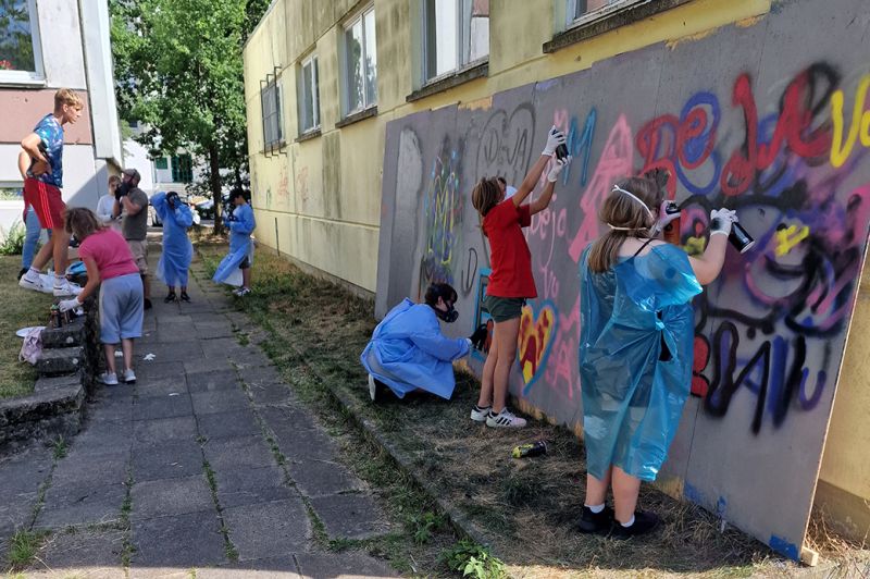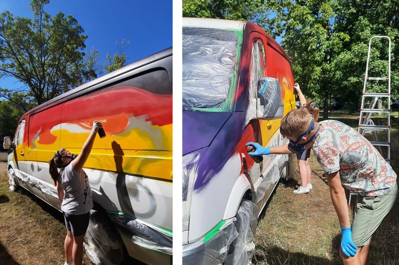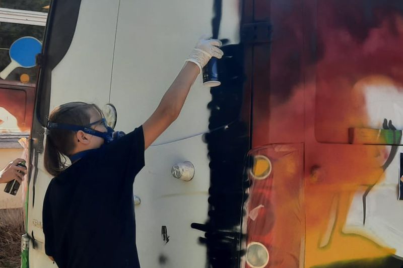 Die letzte Woche der Sommerferien nutzten die Kinder und Jugendlichen unseres Treffpunktes „Deja Vu“ unter Anleitung zweier Graffitisprayer aus Rostock, ihr Spielmobil bunt und auffällig zu gestalten. Hier wurde ein lang geplantes Projekt durch die Kolleg*innen des Treffpunktes, Rebecca Kirsch und Frank Piskulski, gemeinsam mit dem Landesjugendwerk der AWO M-V verwirklicht.