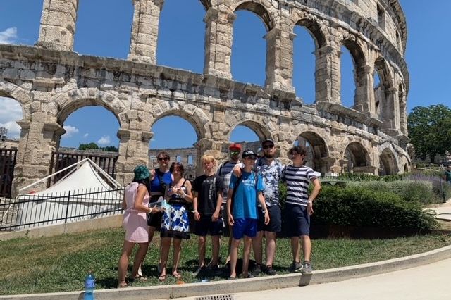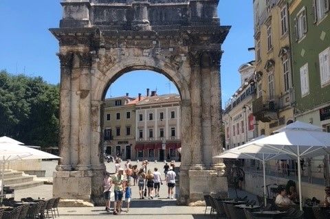 Der fünfte Tag unserer Ferienfahrt bedeutete Kulturprogramm: es ging zu der im Süden Istriens gelegenen Stadt Pula, in welcher wir sowohl das dortige Amphitheater besuchten, als auch durch die vielen kleinen, mediterranen Gassen schlenderten. Danach ging es zur wohlverdienten Abkühlung wieder in das Meer bzw. den Pool. Das heutige Abendbrot bestand außerdem aus einer kleinen Ferienfahrt-Tradition, Nudeln mit Tomatensoße a lá Herr Cwielong.