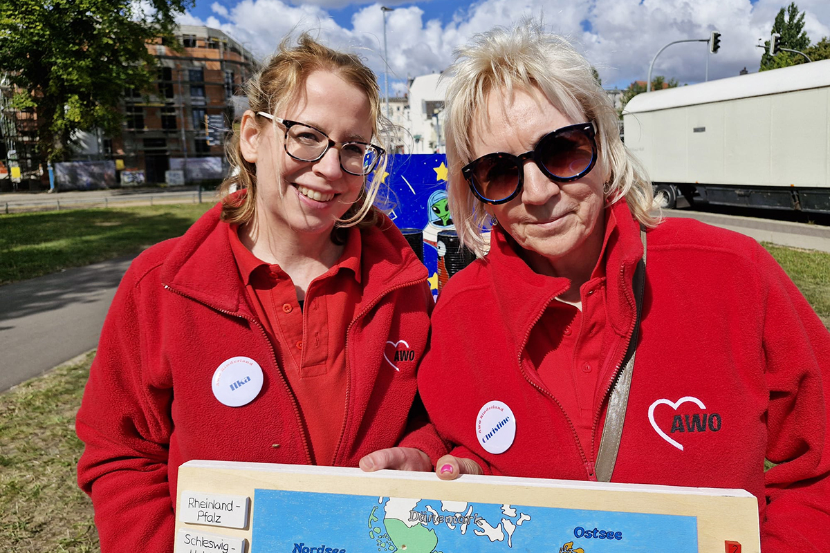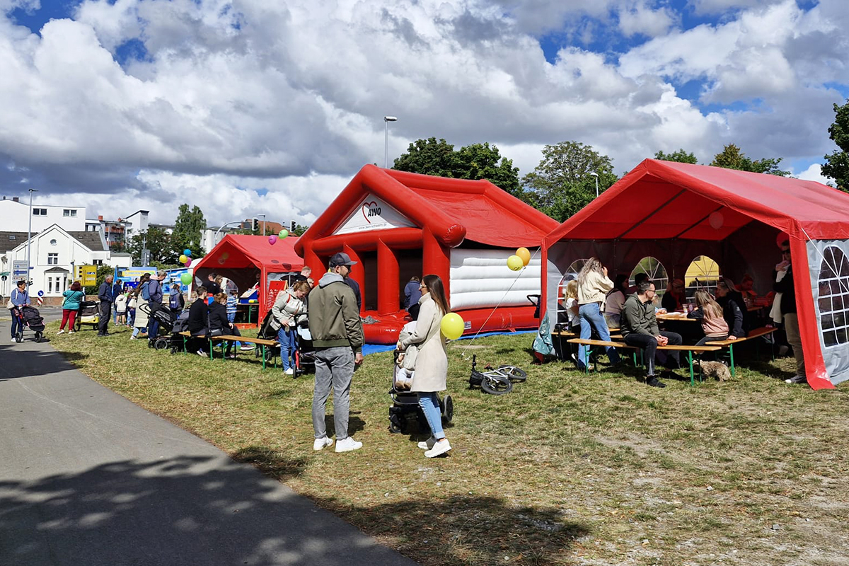 Bei unsere Aktionen - das Fußballdarts, die Hüpfburg, das Kinderschminken, das Dosenwerfen sowie unsere Buttonmaschine mit Bastelstand konnten sich die Kinder austoben und kreativ werden. Auch unser Maskottchen AWOscha war wieder mit am Start und begeisterte nicht nur die Kleinen.