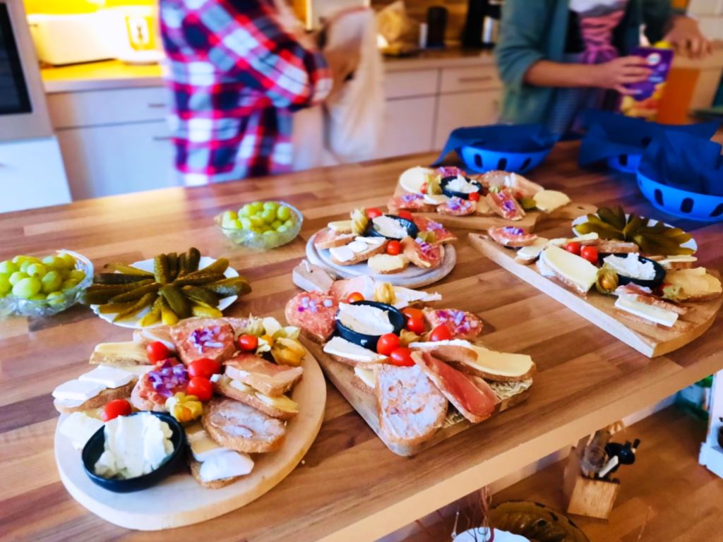 Das Fest begann mit einem zünftigen Brunch für die Tagespflegegäste. Laugenbrezeln, eine deftige Käseplatte, den typischen Obazda , bayrische Würste mit Leberkäse, Germknödel und eine leckere Kürbissuppe wurde serviert. Nach dem bayerisch kräftigen Essen standen Bewegung und Spaß auf dem Programm. Die Tagesgäste traten zu einem lustigen Wettbewerb an. Das war zum Beispiel Nägel mit dem Hammer in eine Baumscheibe schlagen oder Luftballons mit einem Pfeil zum Platzen bringen. Natürlich ging es hier um den gemeinsamen Spaß. Der Sieger bekam ein Lebkuchenherz überreicht. Zwischendurch schunkelten die Senioren und tanzten Polonaise.