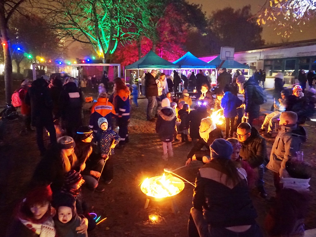 Unser Lichterfest ließ wieder viele Kinderaugen leuchten und sorgte für strahlende Gesichter. An zahlreichen Stationen konnten die Kinder kreativ werden: Beim Kinderschminken, an den Lichtkästen mit Sandmalerei, beim Gestalten mit Lichtbausteinen oder beim beliebten Lichterbowling. Auch Bastelstände für Masken und funkelnde Leuchtkugeln sorgten für Begeisterung. Ein besonderes Highlight in diesem Jahr war die beeindruckende Lasershow, die Groß und Klein in Staunen versetzte. Für das leibliche Wohl war ebenfalls bestens gesorgt: Es gab Bratwurst vom Grill, Stockbrot über der Feuerschale, frische Brezeln, Kinderpunsch – und natürlich ganz viel gute Laune. Ein besonderer Dank geht auch an die Feuerwache Schwerin Mitte. Ihr habt uns wieder mit eurer Feuerwehr und den tollen Wasserspielen großartig unterstützt.