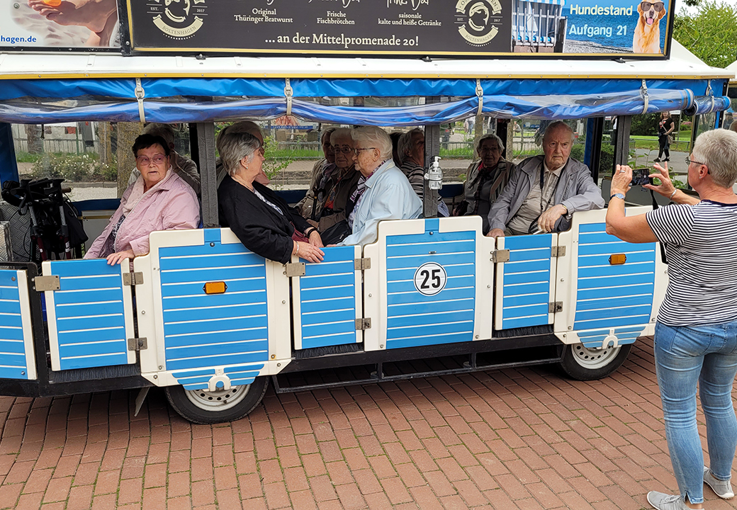 Unsere Senioren der Servicewohnanlage Große Voßstraße in Grevesmühlen lieben Ausflüge. Anfang August genossen alle eine Tour nach Boltenhagen und die Fahrt mit der Bäder Bahn "Carolinchen" durch das Ostseebad bis zur Weißen Wiek. Dazu gab es interessante Informationen zum beliebten Touristengebiet.