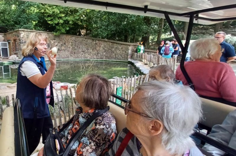 Unsere Senioren-Demenz-WG aus Parchim vergnügte sich bei herrlichem Sommerwetter im Schweriner Zoo. Und da die meisten unserer Senioren nicht mehr so gut zu Fuß sind, freuten sie sich riesig über das Zoo-Mobil. So konnten sie ohne Stress alle Tiere besuchen und diesen Ausflug umso mehr genießen. Außerdem gab es zusätzlich viele interessante Infos über Flora und Fauna und viel Material zum Anfassen. Ein leckerer Imbiss rundete diesen Ausflug ab. Die Pütter Senioren sagen Danke für die tolle Führung und kommen bestimmt bald mal wieder.