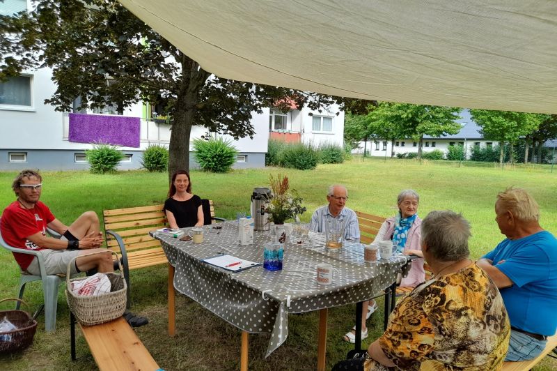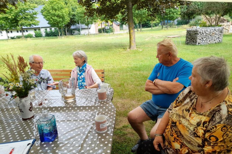 Offener Treff im Nachbarschaftsgarten. Gestern hatten wir wieder viel Besuch in unserem Nachbarschaftsgarten. Darunter auch Reinhard Huß, ehemals Leiter des Fachbereiches Stadtentwicklung und Wirtschaft und „Gründervater“ des Nachbarschaftsgartens im Mueßer Holz. Wir haben einen Walnussbaum gepflanzt und auch unsere Pächter*innen finden sich immer wieder gern zum Plausch im offenen Gartentreff ein.
