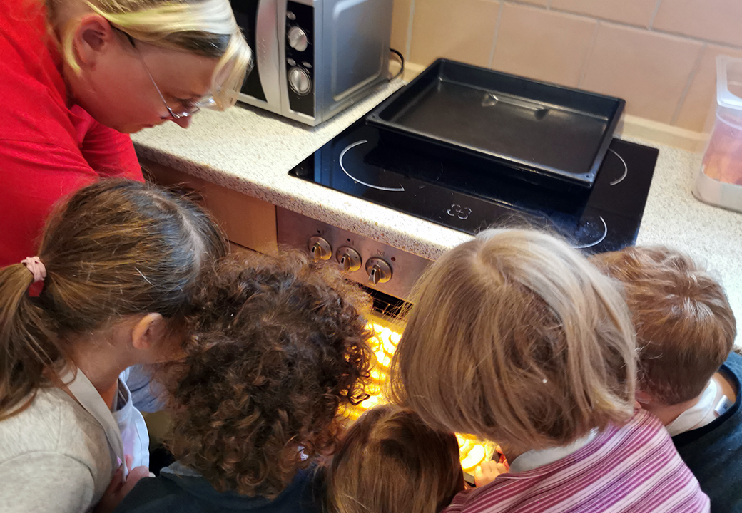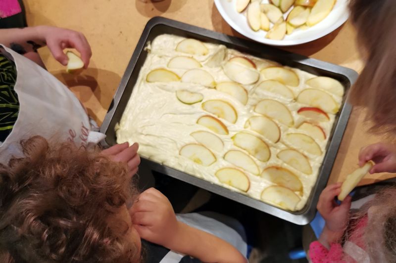 One apple a day, keeps the doctor away! Daran halten sich unsere Kinder aus der Kita Leuchtturm und ernten in jedem Jahr ihr eigenes Obst. Ein selbstgemachter Apfelkuchen aus eigener Ernte ist für die Zwerge dann auch immer das Highlight schlechthin. Also… Backe, Backe, Kuchen. Äpfel schneiden, Teig anrühren – nicht, ohne zu probieren, versteht sich - und dann, ab in den Ofen! Das duftet aber auch… endlich Kaffeezeit und „Mmhh“ gleich vernascht. Schmeckt ja auch nur frisch.