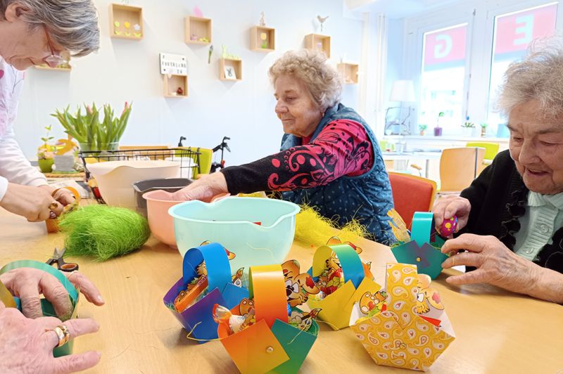 In unserer Tagespflege Am Dreescher Markt wird Osterstimmung großgeschrieben! Unsere Senioren haben sich zusammengetan, um etwas ganz Besonderes für ihre Patenkinder der örtlichen Kita zu basteln. Mit viel Liebe und Hingabe entstehen kleine Osterkörbchen, mit denen sie ihre kleinen Sonnenscheine beim nächsten Besuch überraschen möchten. Diese Beziehung über Generationen hinweg ist von unschätzbarem Wert und bereichert das Leben aller Beteiligten.