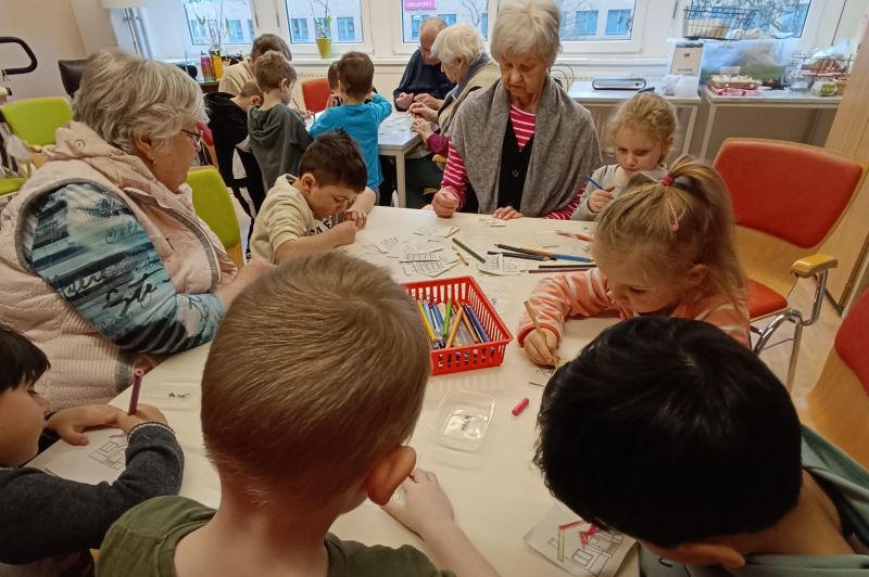 Große Freude bei den Senioren unserer Tagespflege Am Dreescher Markt – der Osterbesuch der Patenkinder aus der Kita Sonnenschein stand an. Die Tagesgäste versteckten die vorbereiteten Osterkörbchen für die kleinen Gäste und hatten viel Spaß, ihnen beim Suchen zuzuschauen. Nach einem kleinen Osterprogramm der Kinder setzten sich alle zum Malen an die Tische und ließen der Kreativität ihren Lauf. Gemeinsam haben Jung und Alt eine wundervolle Osterparty gefeiert, voller Lachen, Spaß und unvergesslichen Momenten. Es ist immer schön zu sehen, wie Generationen zusammenkommen und sich gegenseitig bereichern. Danke an unsere Patenkinder der Kita Sonnenschein für ihre herzerwärmenden Besuche! Wir freuen uns schon jetzt auf ein Wiedersehen!