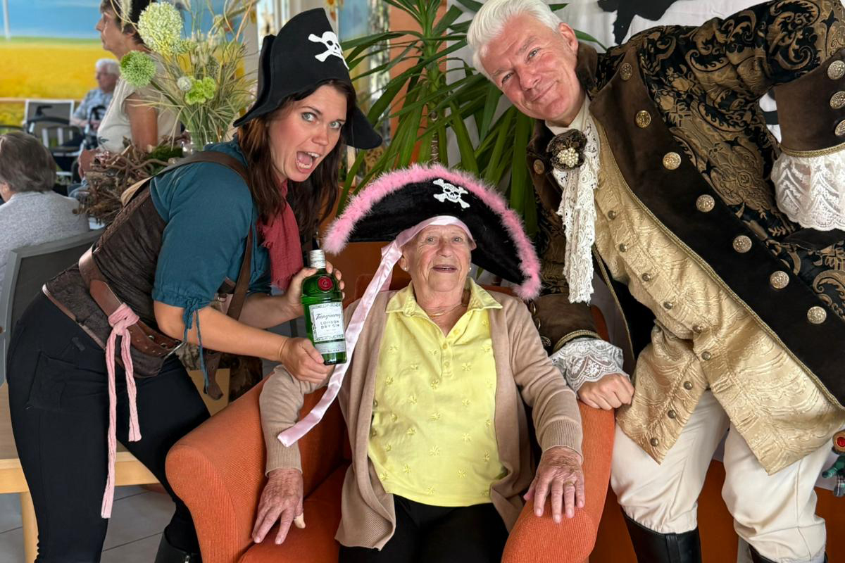 Doch das Abenteuer ging weiter: Nur drei Wochen später legten die Piraten selbst bei uns im Seniorenzentrum zu einem Überraschungsbesuch an. Da staunten unsere Bewohner nicht schlecht und genossen einen Nachmittag voller Lachen und Unterhaltung mit ihrem eigenen Piraten zum Anfassen Quatsch machen!