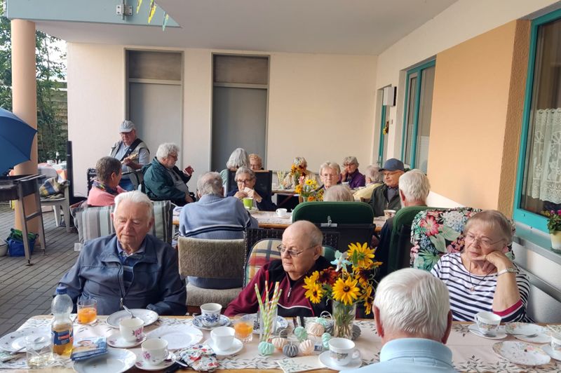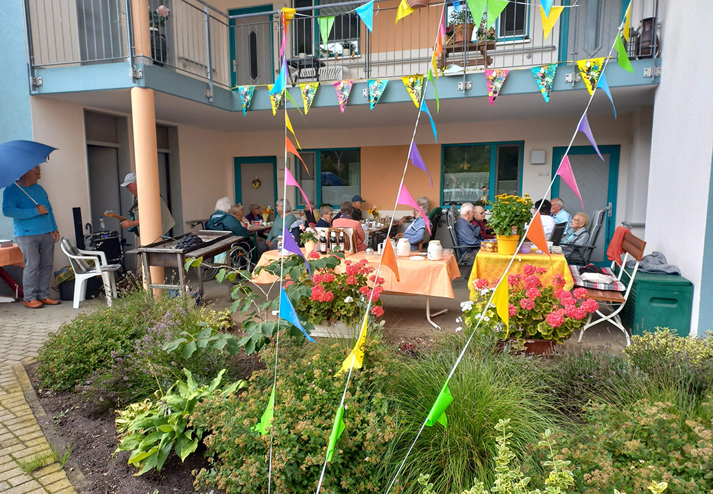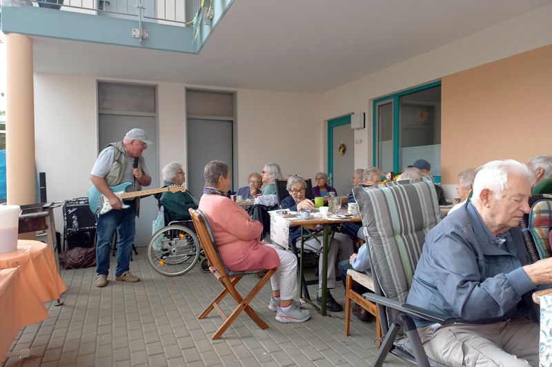 SOMMERFEST … in der Seniorenwohnanlage-Buchenweg in Schelfwerder. Bei abwechselndem Regen und Sonnenschein, gute Gespräche bei Kaffee und Kuchen, Musikbegleitung von >>> Manfred Möhr <<< und am Grill >>> Peter Busse (DANKESCHÖN) <<< der alle mit herzhafter Bratwurst versorgte.