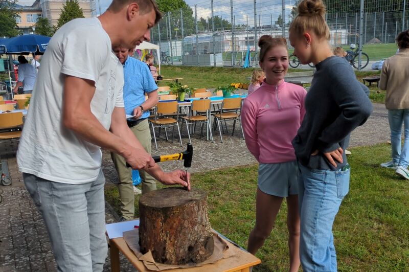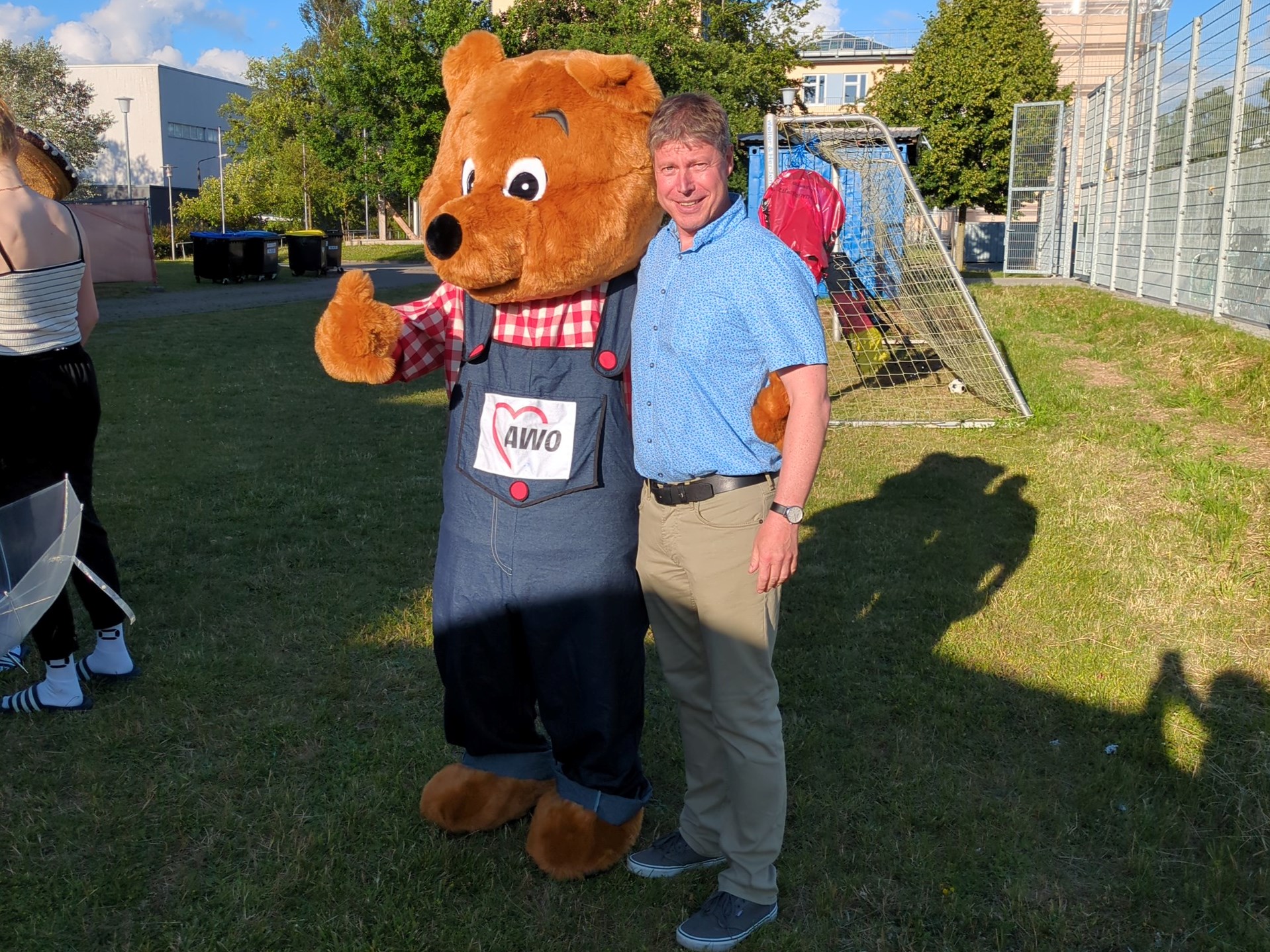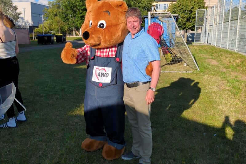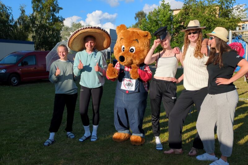 Es ist schon zu einer festen Tradition geworden, jährlich zum Schuljahresende, unser Sommerfest durchzuführen. Gefreut hat uns, dass auch einige Eltern und Angehörige unserer Sportler der Einladung gefolgt sind. Für Maskottchen „AWOscha“ war die Teilnahme jedoch eine Premiere. Er, der sonst überwiegend die Kindergartenkinder erfreute, hat auch bei den Jugendlichen für große Belustigung gesorgt. Sie rissen sich förmlich darum, sich mit ihm fotografieren zu lassen. Diverse Stände, wie z.B. Leitergolf, Dosenwerfen, Fotostand, Batikstand, Minispiele, Tauziehen und Hau den Nagel rein sorgten für eine abwechslungsreiche Unterhaltung.