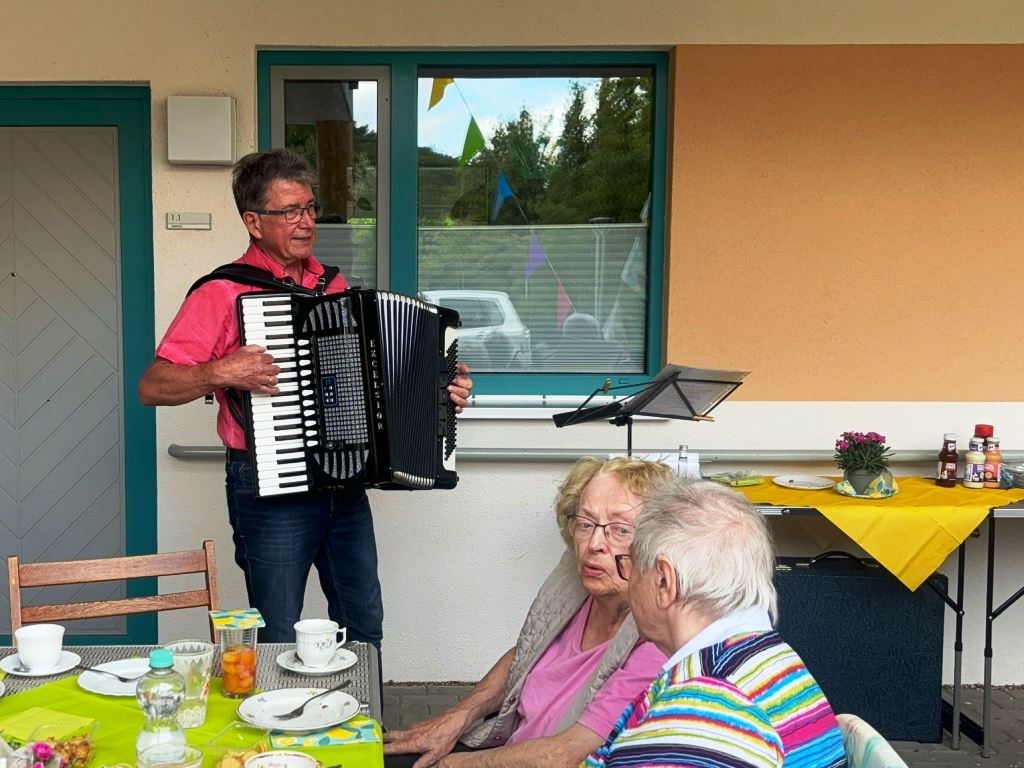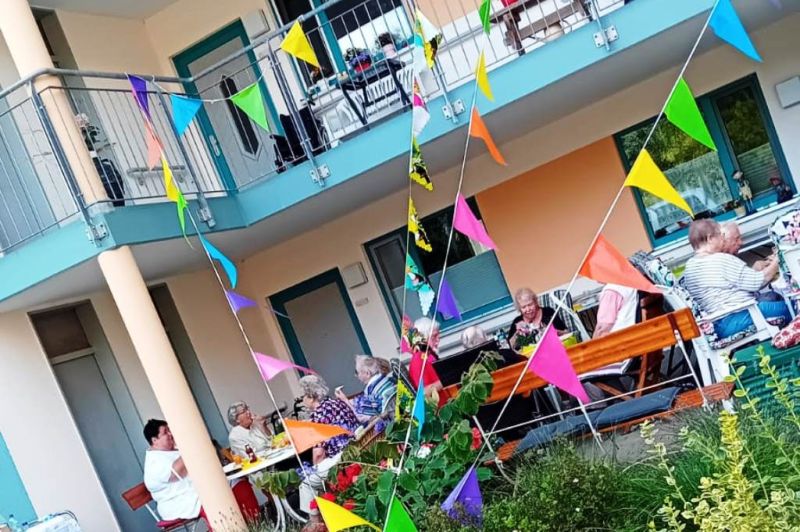 Ende Juli fand in der Servicewohnanlage im idyllischen Schelfwerder ein fröhliches Sommerfest unter dem Motto "Musik liegt in der Luft" statt. Die musikalische Unterhaltung übernahm Peter Hahn, der mit seinen Klängen für gute Stimmung sorgte. Es wurde gesungen, geschunkelt, getanzt und das wunderschöne Wetter genossen. Bei Kaffee und Kuchen tauschten die Bewohner viele Erinnerungen aus. Zum krönenden Abschluss grillte Herr Peter Busse leckere Bratwurst und Klopse für alle Anwesenden.