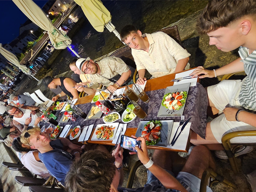 Am späten Nachmittag hieß es: Jetzt kommt die Überraschung Auf nach Novigrad! Von dort aus starteten wir unsere Delphinsafari. Mit großen Augen haben wir aufs Meer geschaut, und nach einer Weile – BÄM! – die schnellen Schwimmer gesichtet! Die Aufregung war so groß! Es war ein echtes Highlight für uns alle!