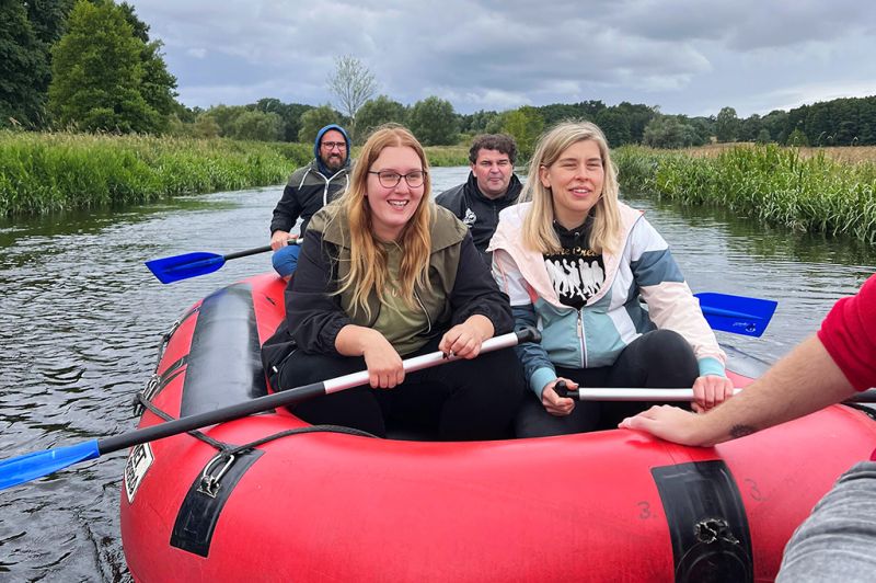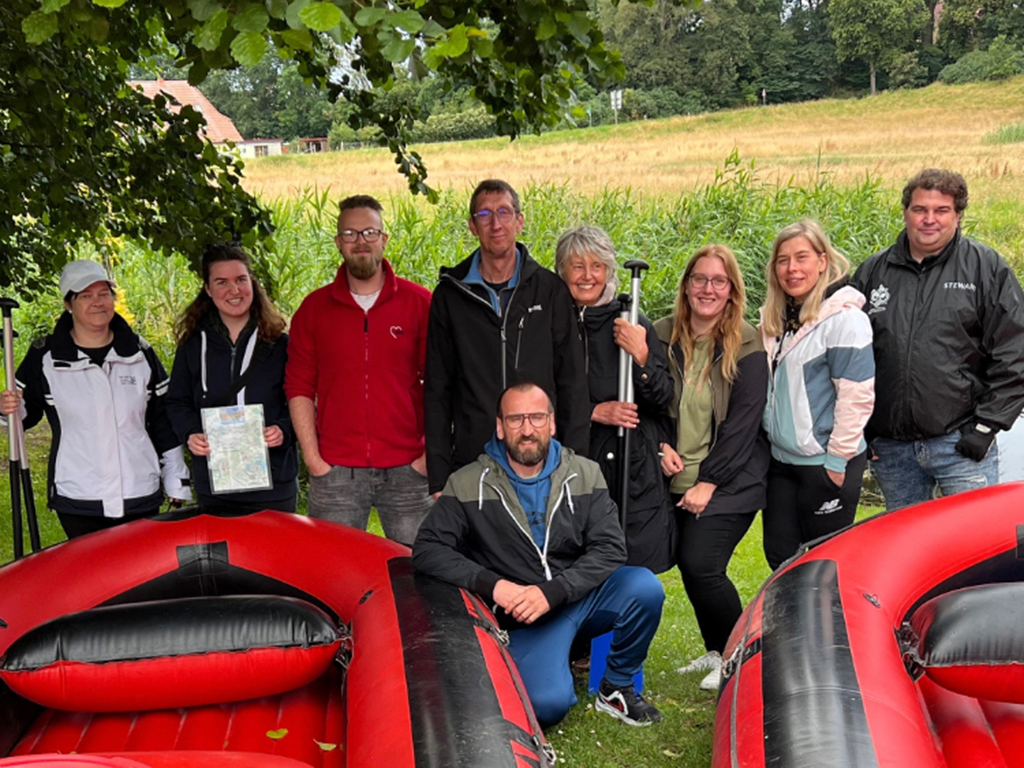 Teamtag: Die Kinder- und Jugendwohngruppe vom Demmlerplatz hat sich an ihrem Teamtag einer ganz besonderen sportlichen Herausforderung gestellt. Mit dem Ziel eines gemeinsamen Mittagessen im Restaurant „Burgwall“ in Groß Raden, starteten wir pünktlich um 10:00 Uhr unsere gemeinsame Schlauchboottour von Weitendorf nach Groß Görnow. Aufgeteilt in zwei Booten, versuchten wir unser Ziel innerhalb von 2,5h zu erreichen, was aufgrund des Wasserstandes und frisch umgestürzten Bäumen ein kleines Abenteuer wurde. Da diese Umstände scheinbar noch nicht sportlich genug angehaucht waren, entschieden wir uns kurzerhand die Tour unter mehreren “definitiv bewussten“ zusätzlichen Bootdrehungen zu intensivieren. Zum Glück konnte die Tischreservierung pünktlich eingehalten werden, sodass wir bei leckerstem Essen die vergangenen Wochen und Monate gemeinsam Revue passieren lassen konnten.